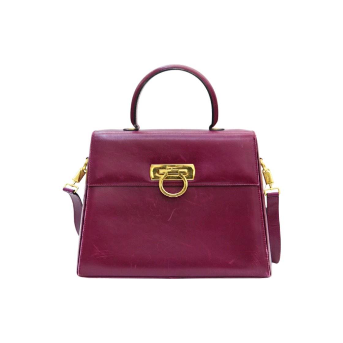 페라가모 21 2268 레드 금장간치니 탑핸들 미듐 켈리백 토트백 겸 숄더백 aa34751