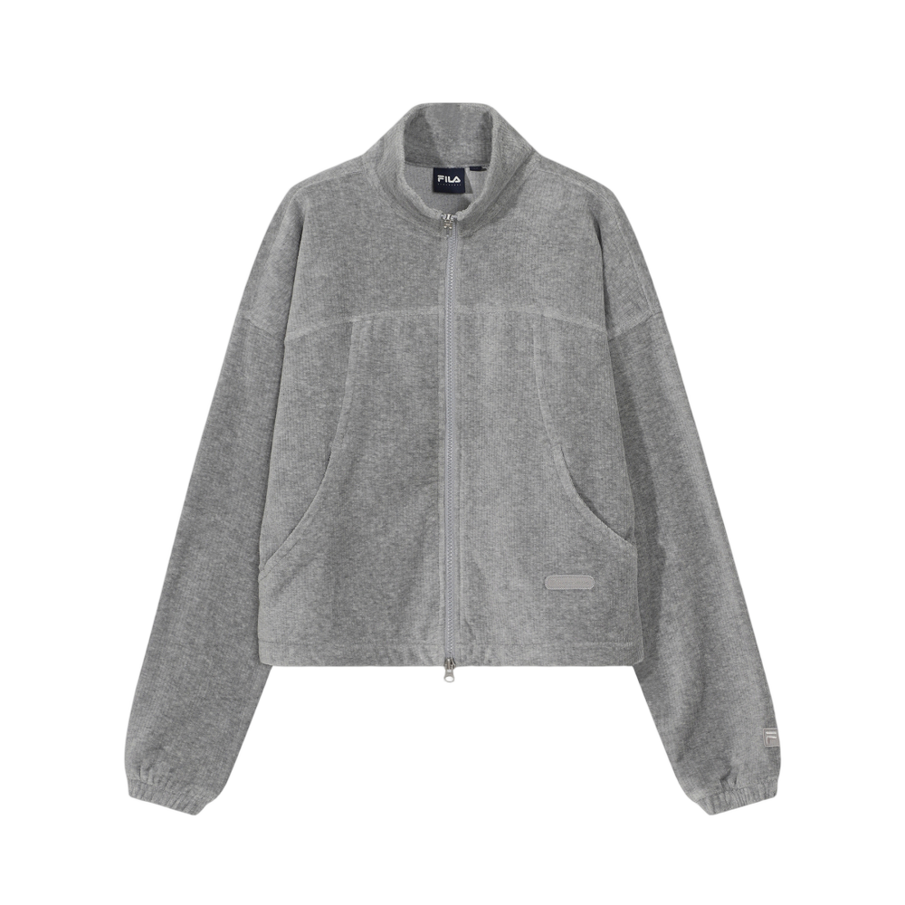 [6% 적립] 휠라 벨로아 코듀로이 스탠넥 집업 상의 멜란지 그레이