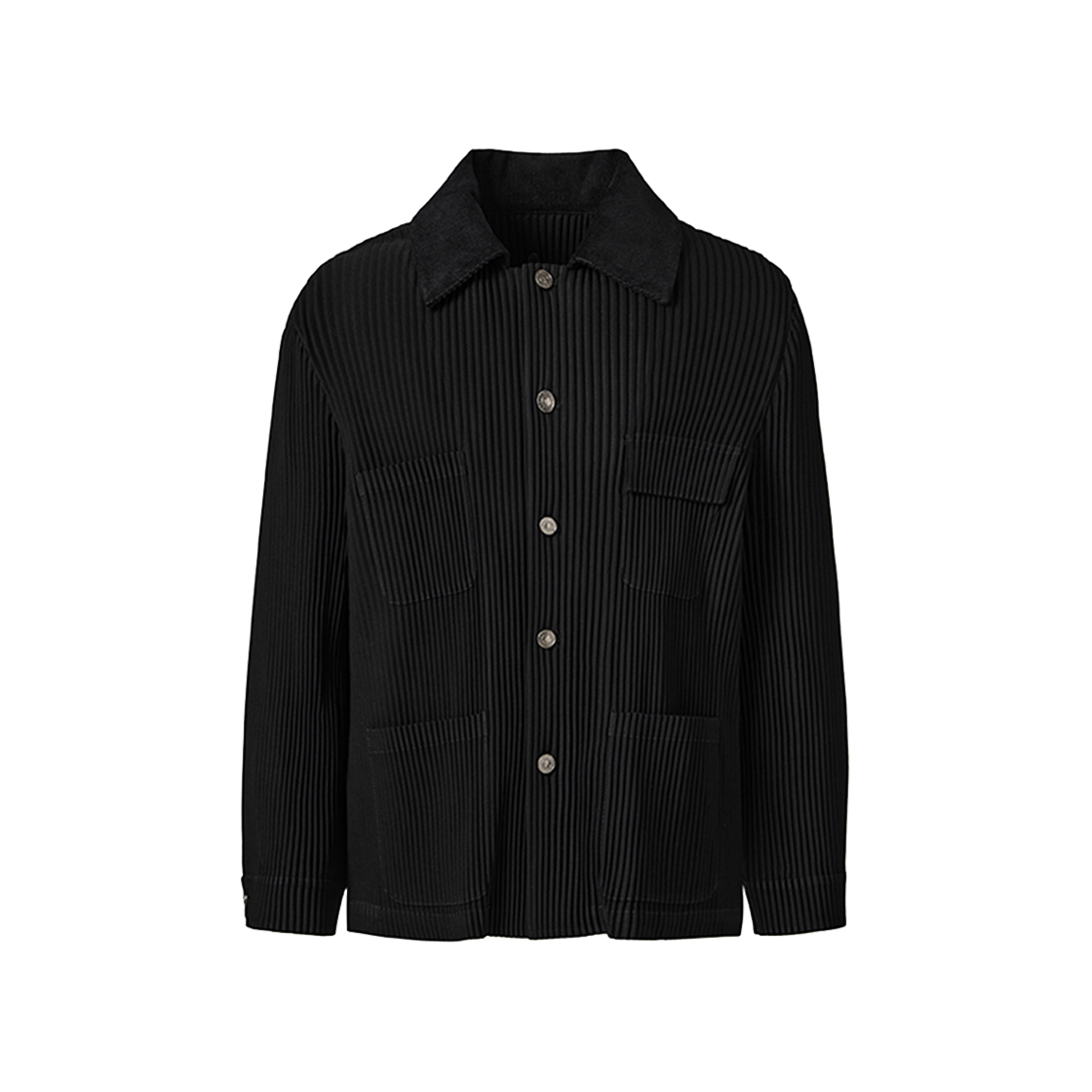 몽플리쎄 여성[공용] 코듀로이 카라배색 라이너 플리츠 워크 자켓 블랙
