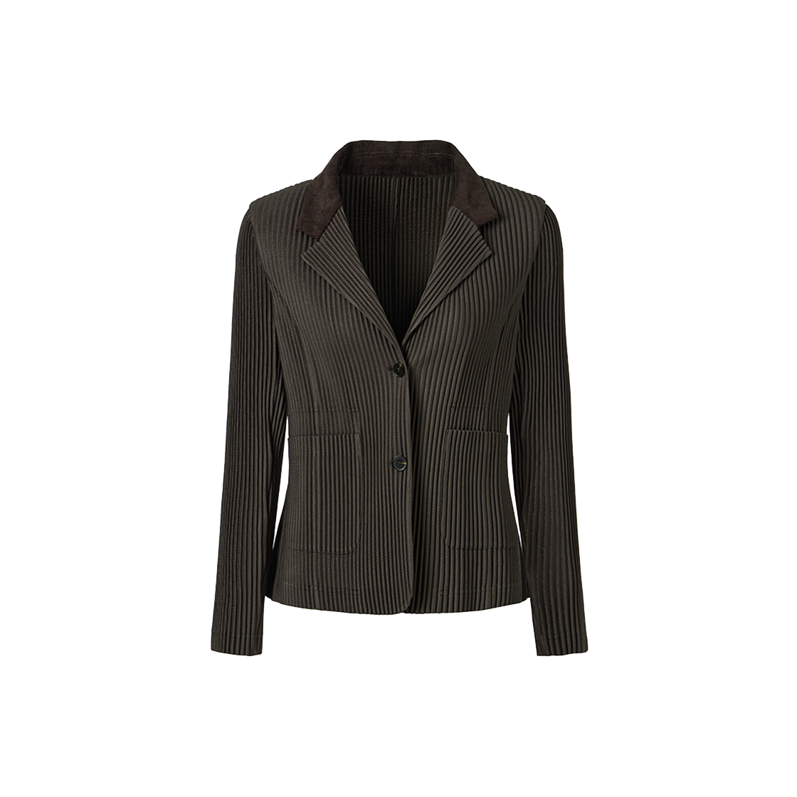 몽플리쎄 여성 코듀로이 배색 포멀 플리츠 자켓 브라운