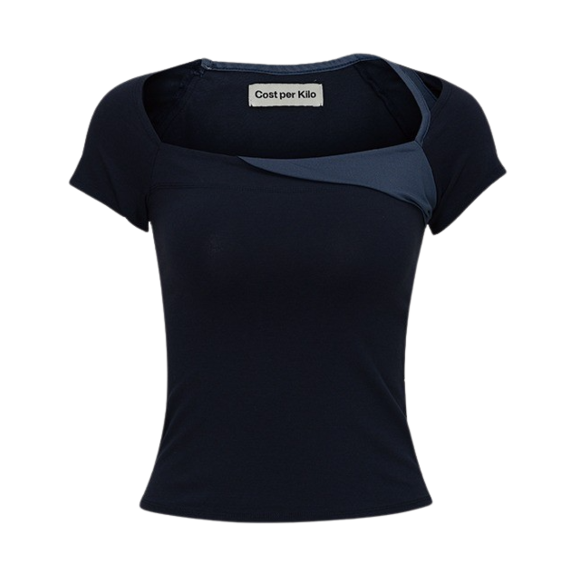 코스트퍼킬로 스퀘어 넥 숏 슬리브 티셔츠 네이비