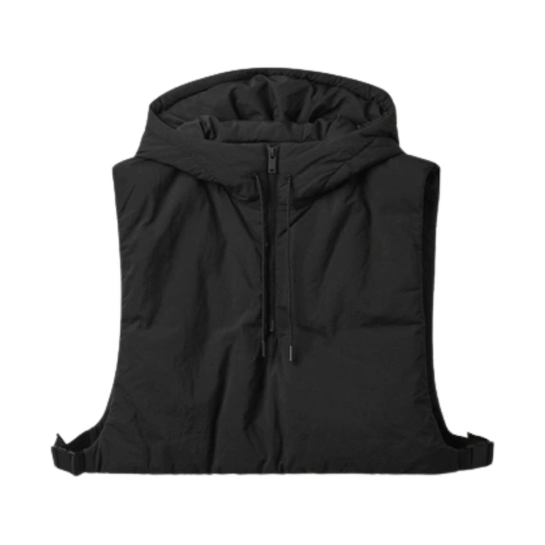 코스 버클 사이드 패딩 후드 질레 블랙