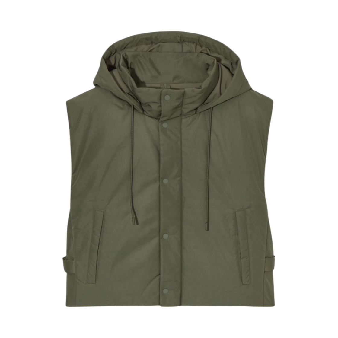 코스 버클 사이드 패딩 후드 질레 다크 그린