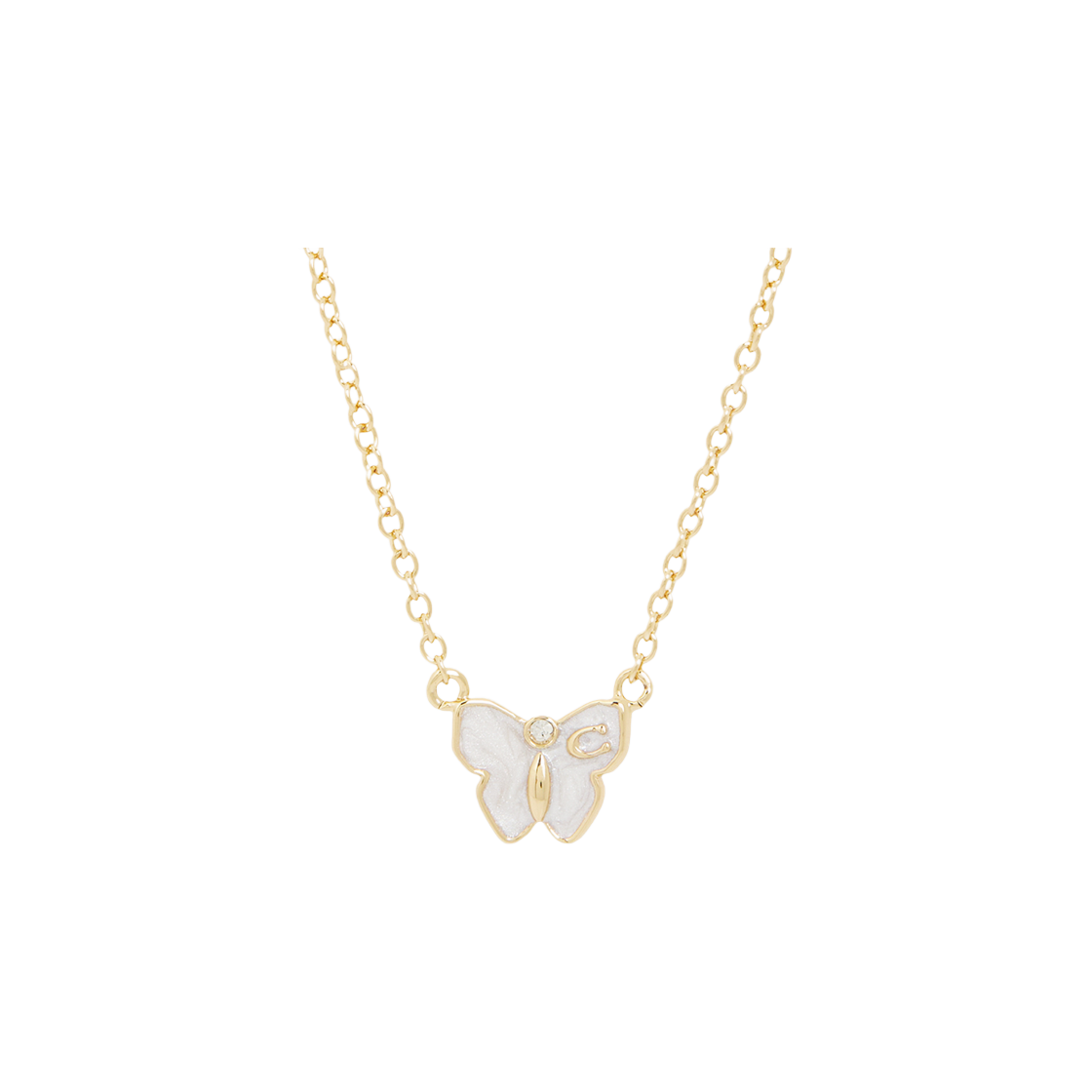 (W) 코치 브라스 에나멜 스와로브스키 크리스탈 네클리스 골드
