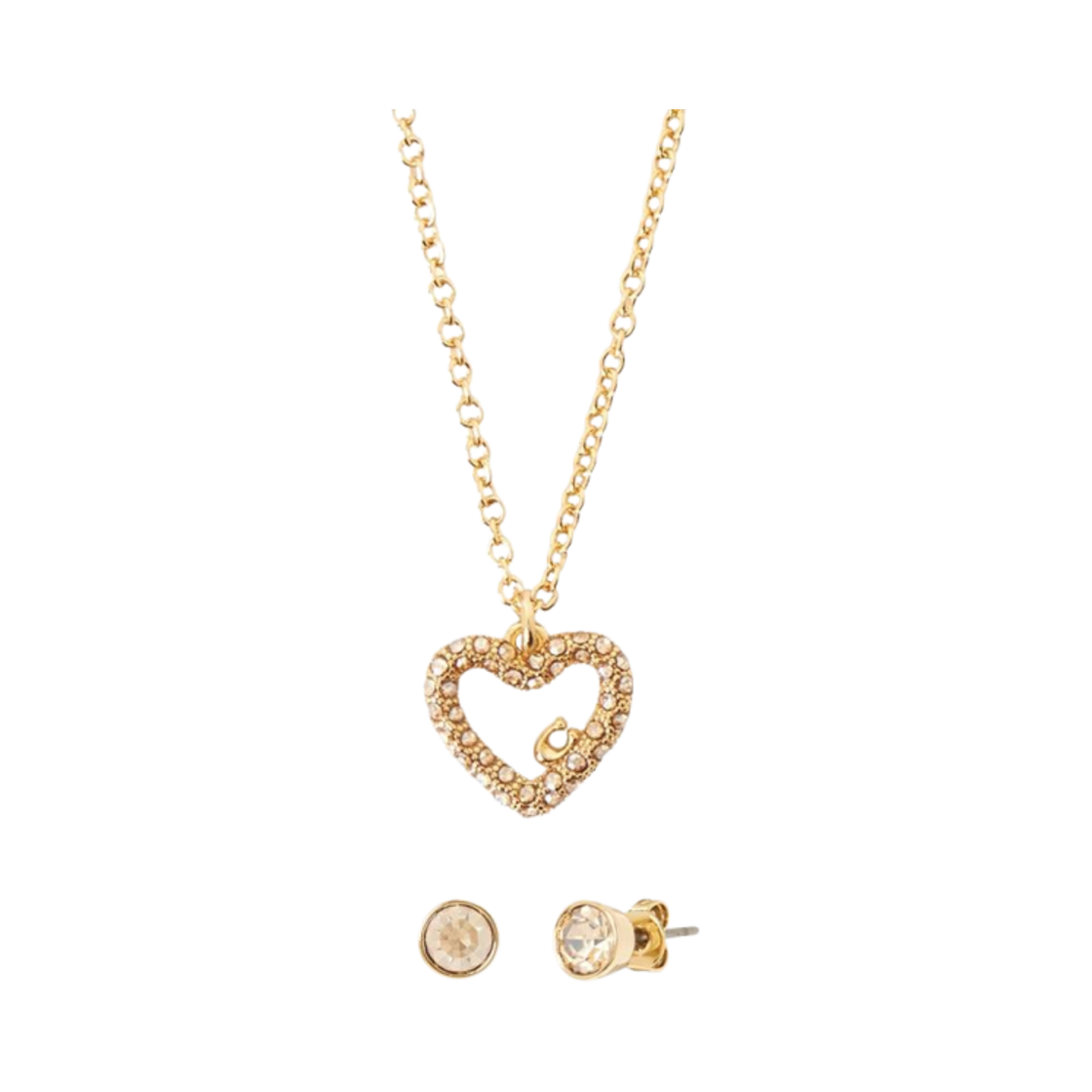 (W) 코치 시그니처 네클리스 이어링 세트 골드 핑크