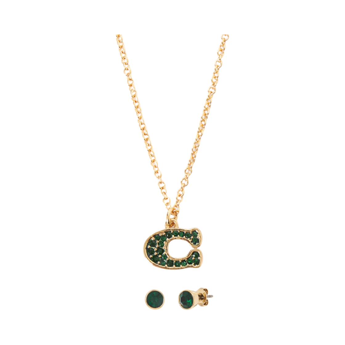 (W) 코치 시그니처 네클리스 이어링 세트 골드 그린