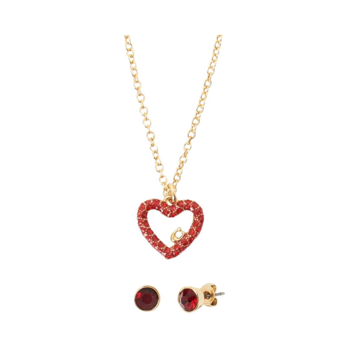 (W) 코치 시그니처 네클리스 이어링 세트 골드 레드