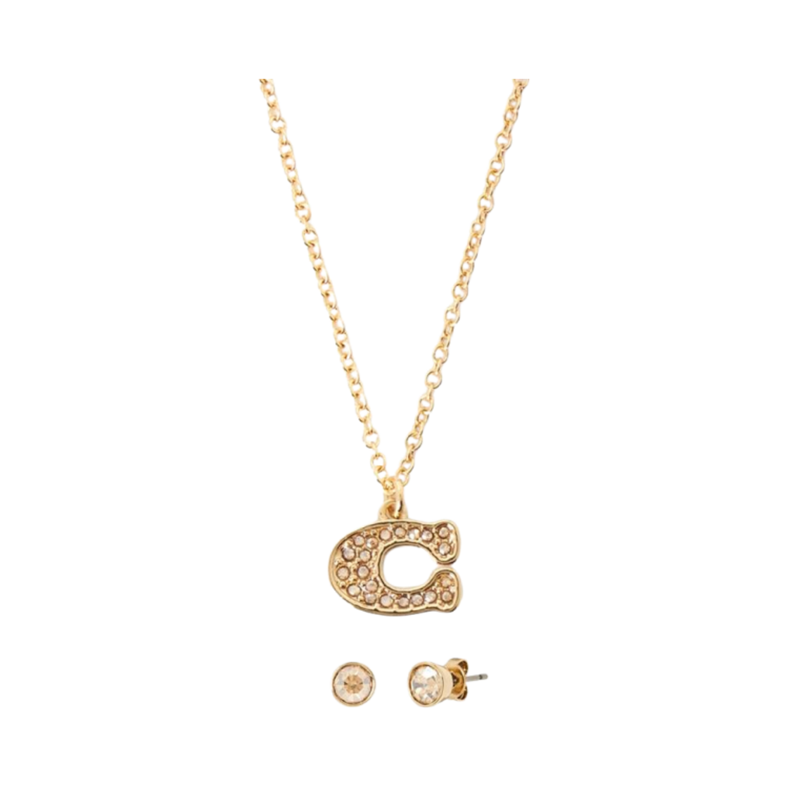 (W) 코치 시그니처 네클리스 이어링 세트 골드