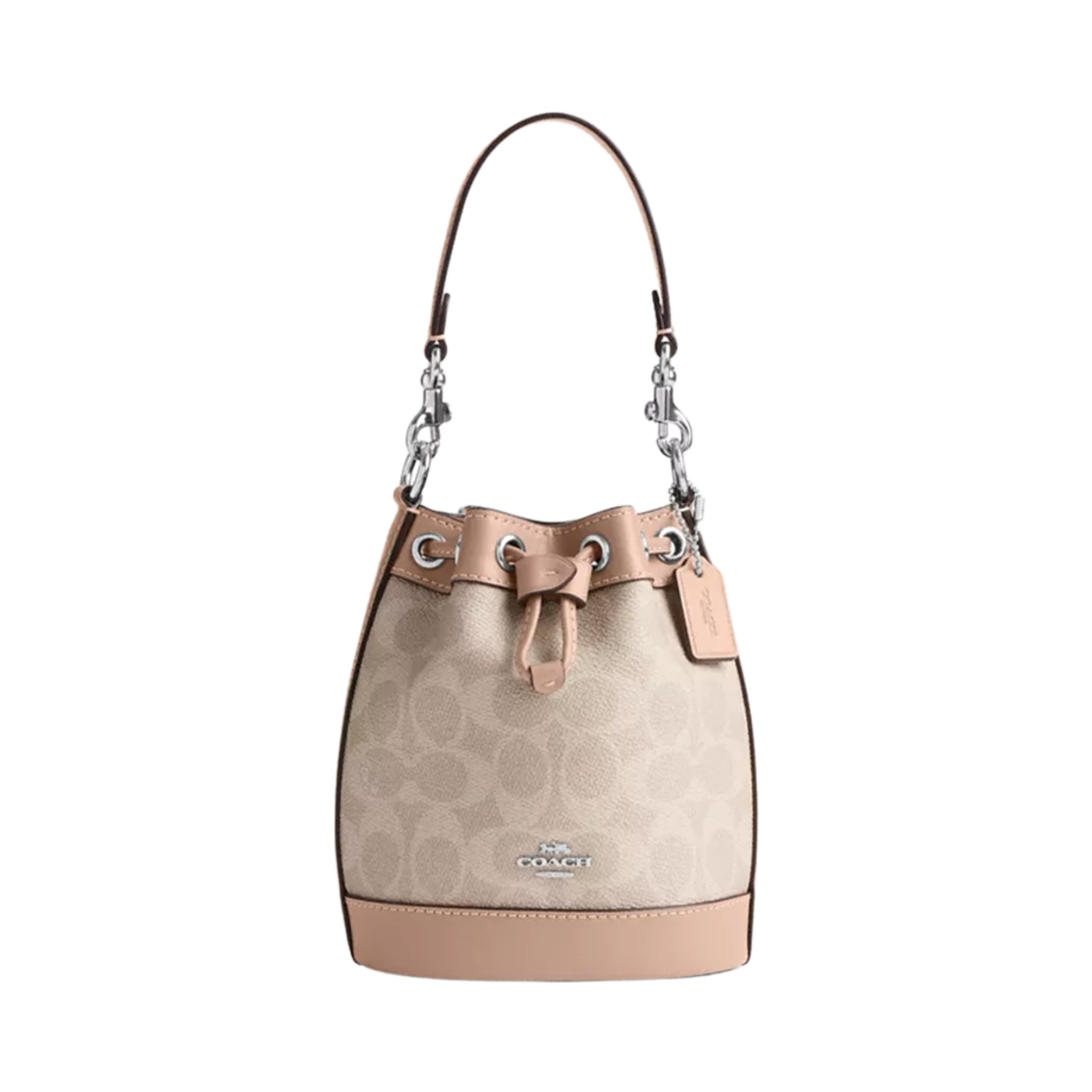 코치 시그니처 캔버스 미니 버킷백 샌드 토프