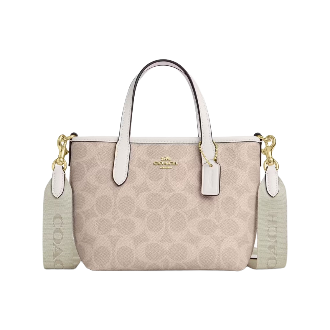 코치 시그니처 캔버스 시티 미니 토트백 골드 샌드