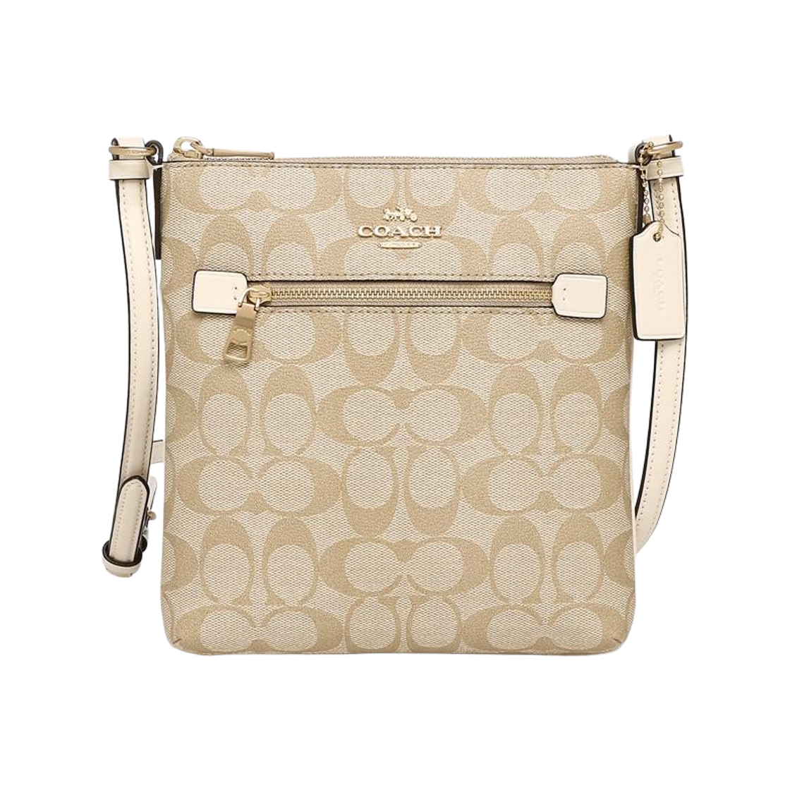 코치 시그니처 캔버스 미니 로완 파일백 골드 라이트 카키