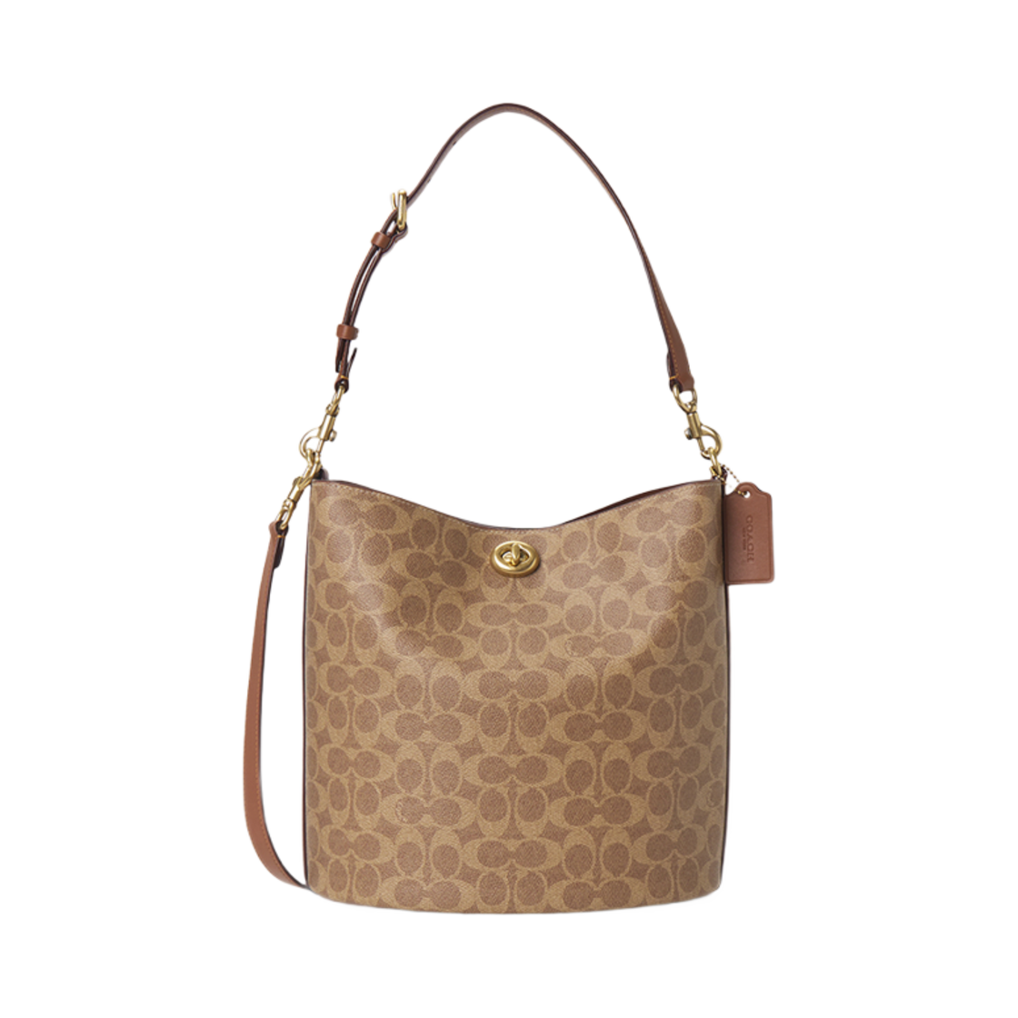 코치 윌로우 시그니처 캔버스 버킷백 탄 카라멜