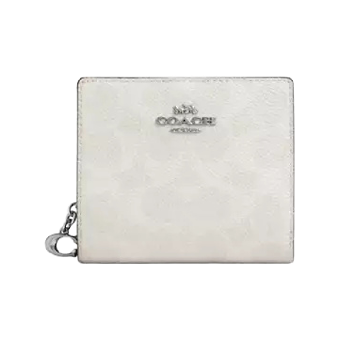 코치 시그니처 캔버스 스냅 월렛 실버 화이트