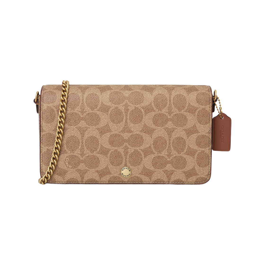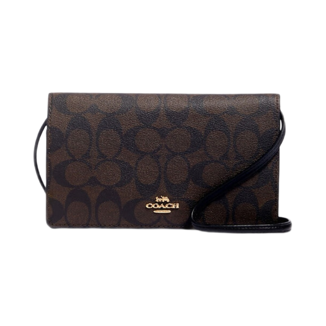 코치 시그니처 캔버스 안나 폴드오버 크로스바디 클러치 브라운 블랙