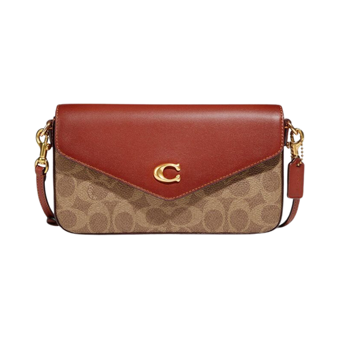 코치 시그니처 캔버스 안나 폴드오버 크로스바디 클러치 브라운 블랙