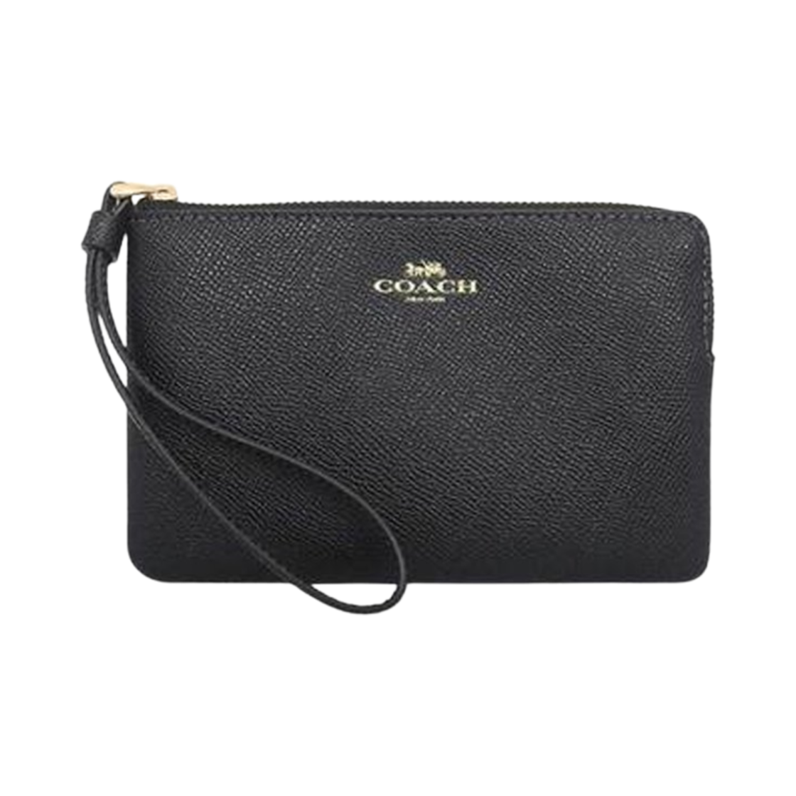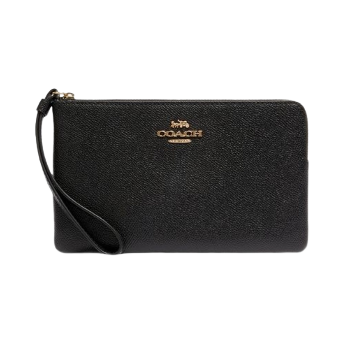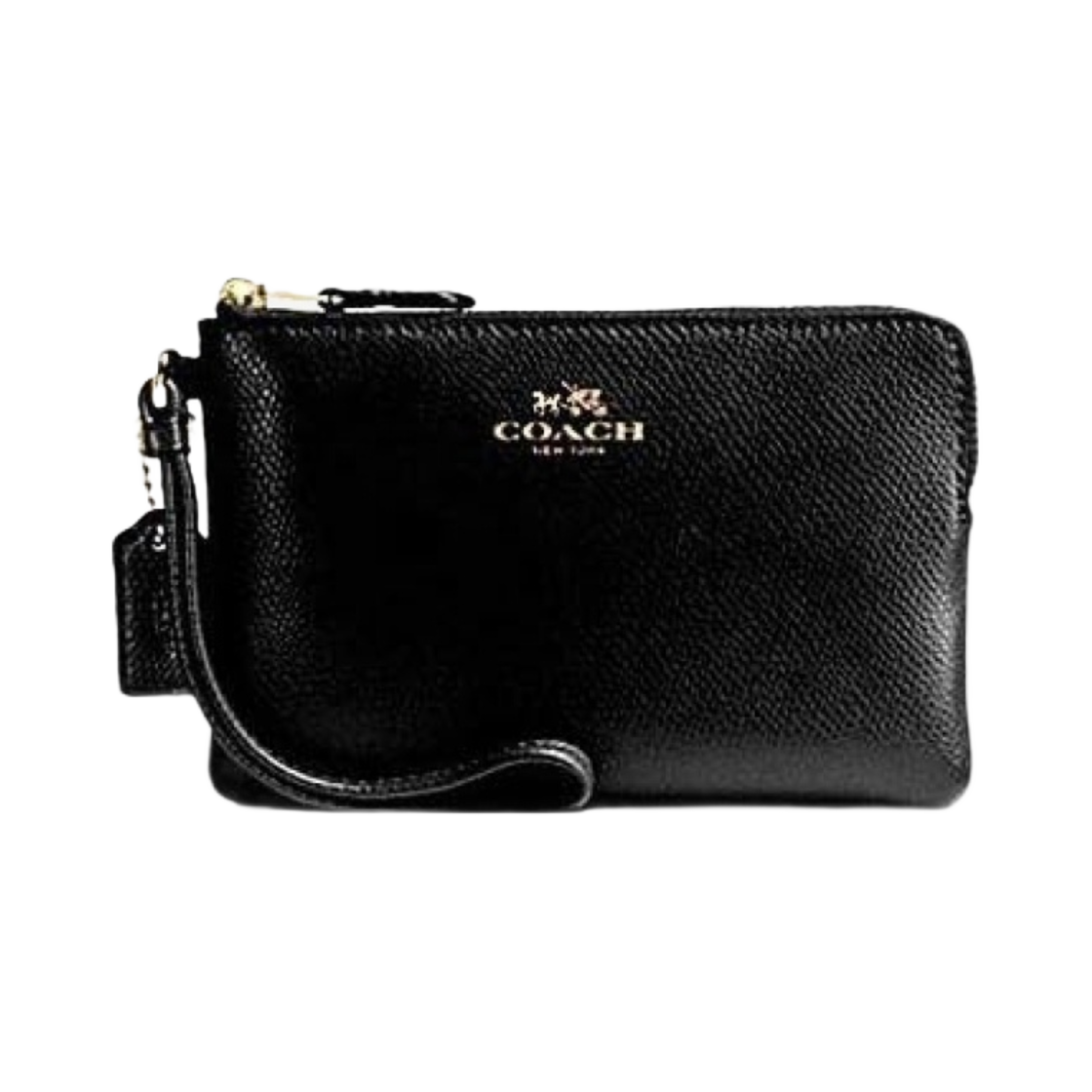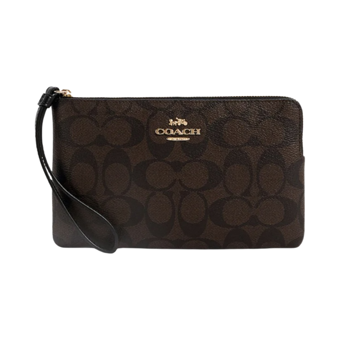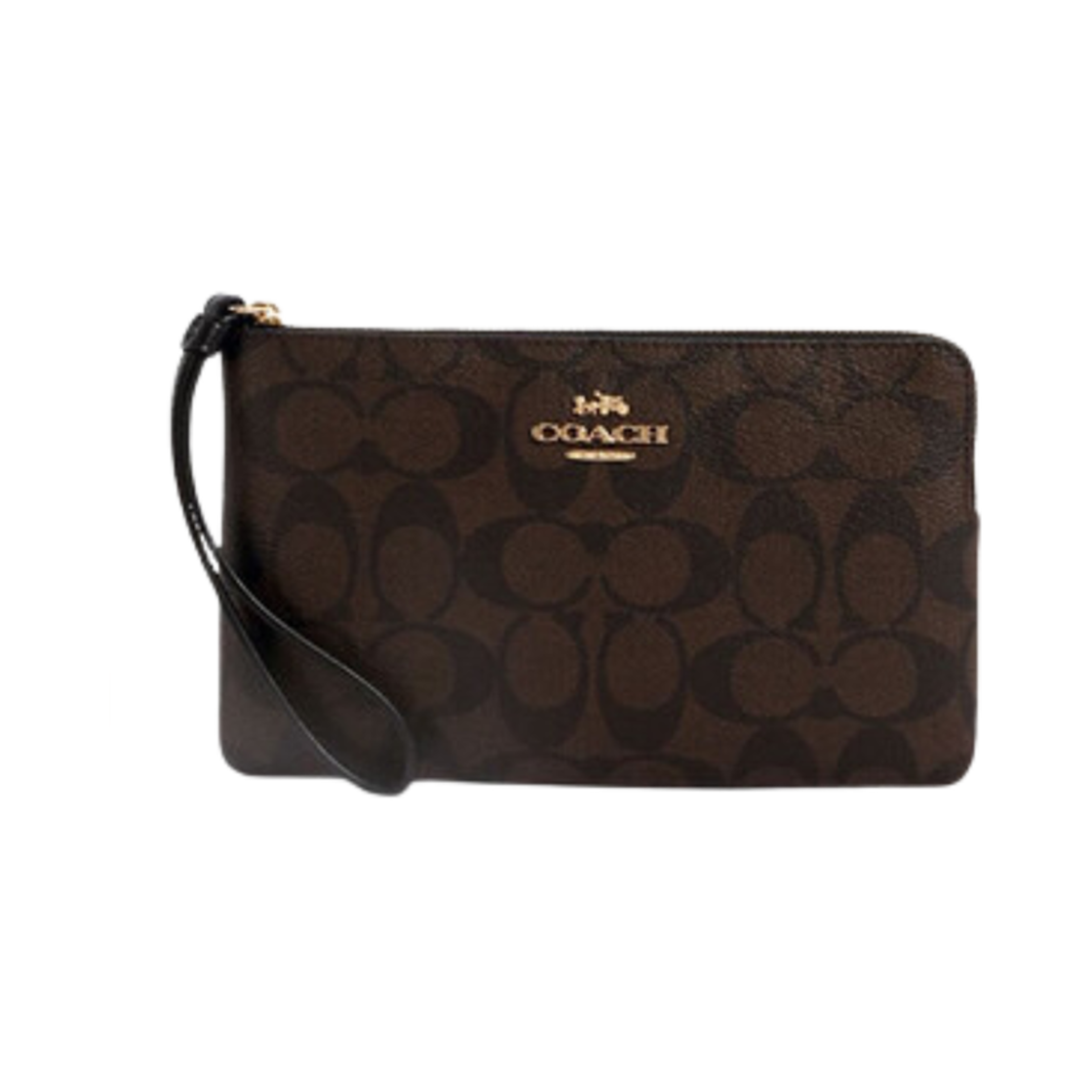 코치 시그니처 캔버스 라지 코너 집 리스틀릿 브라운 블랙