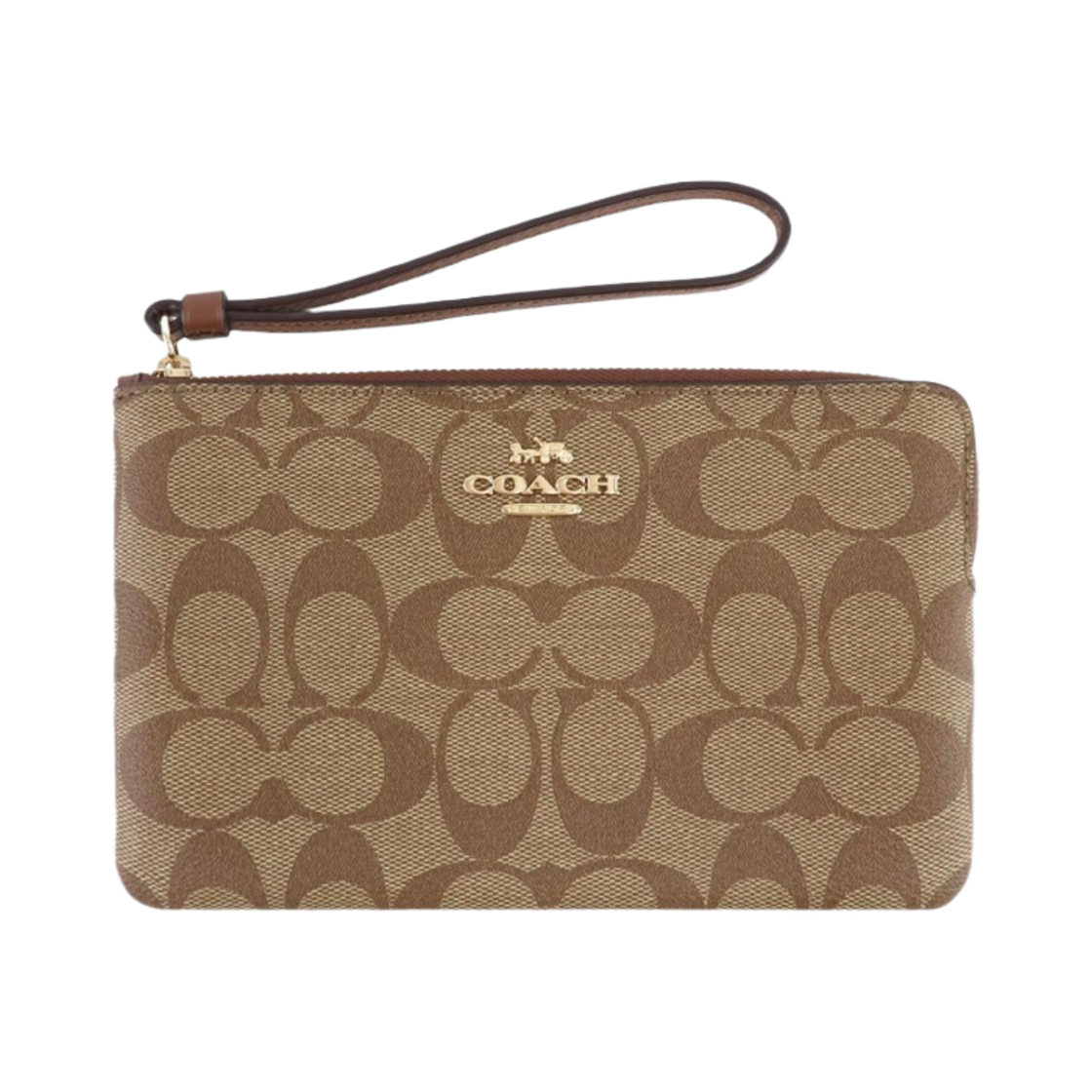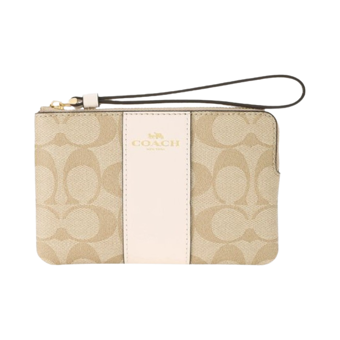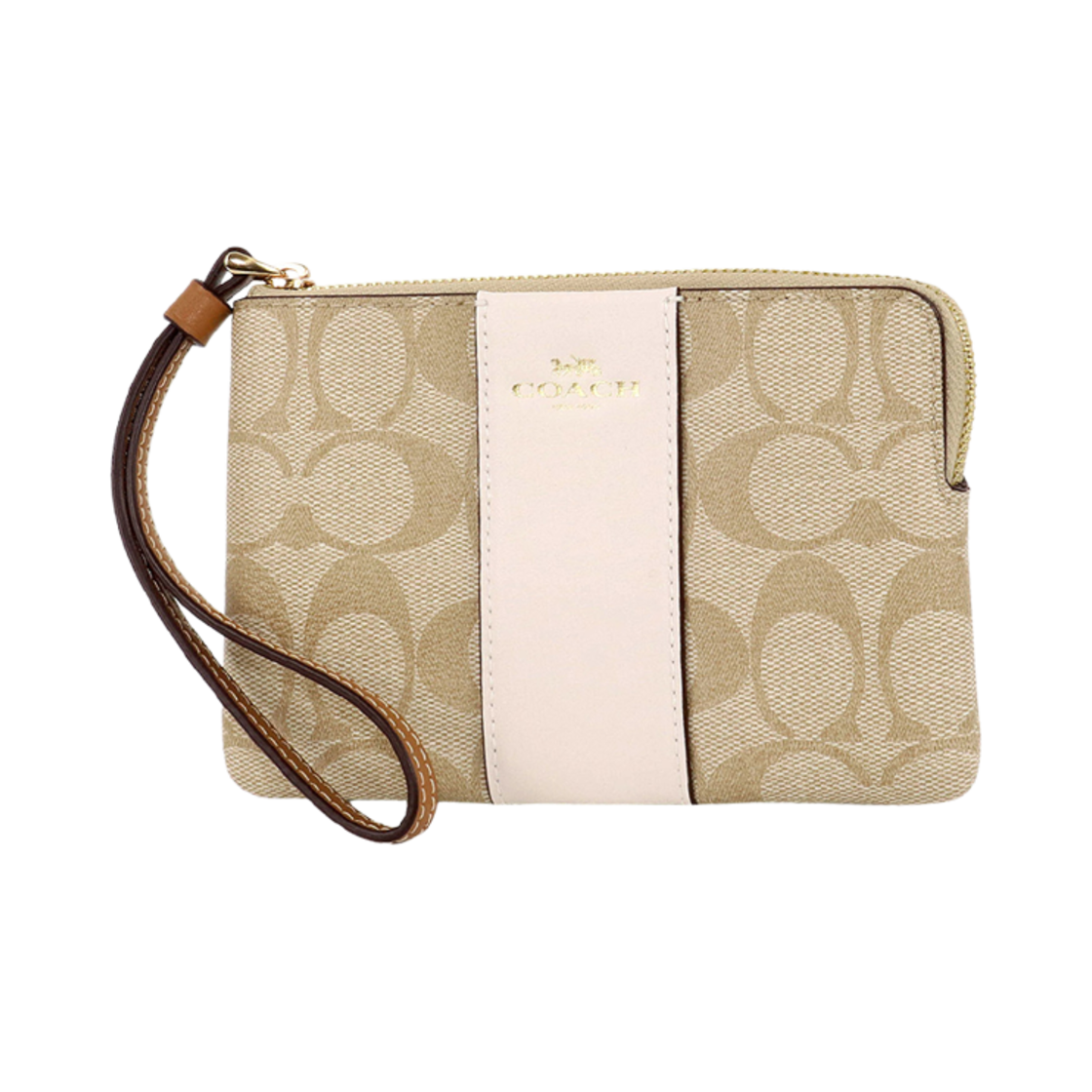 코치 시그니처 캔버스 코너 집 리스틀릿 골드 라이트 카키 초크