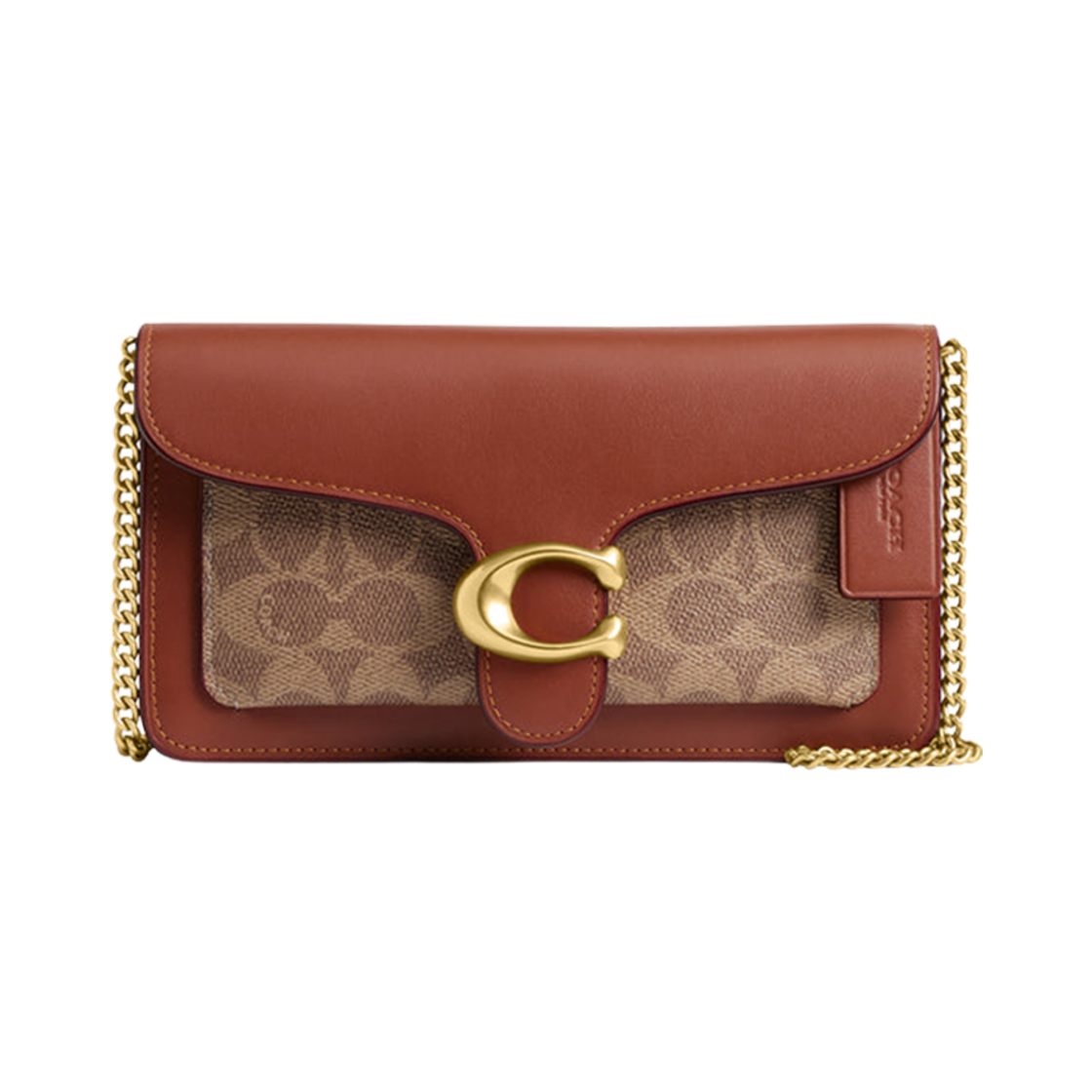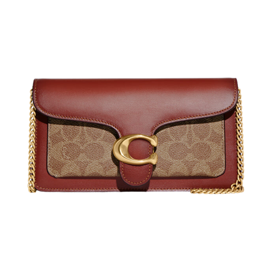 코치 시그니처 캔버스 태비 체인 클러치 탄 러스트