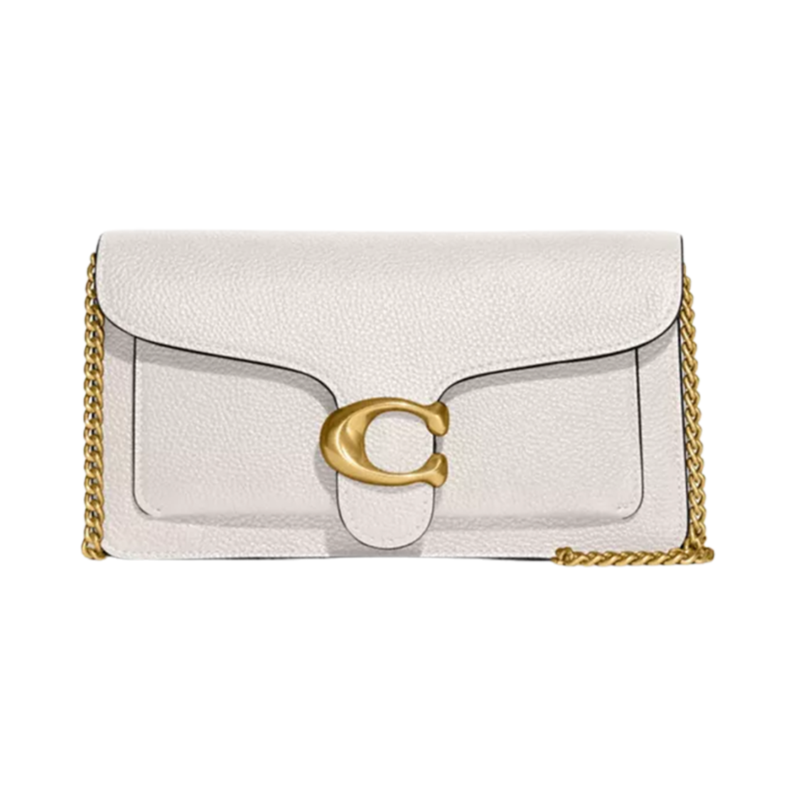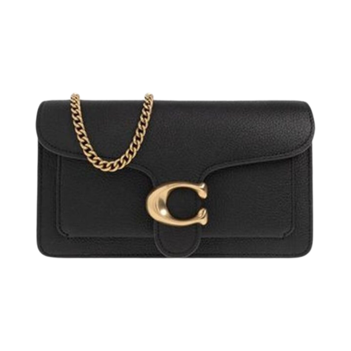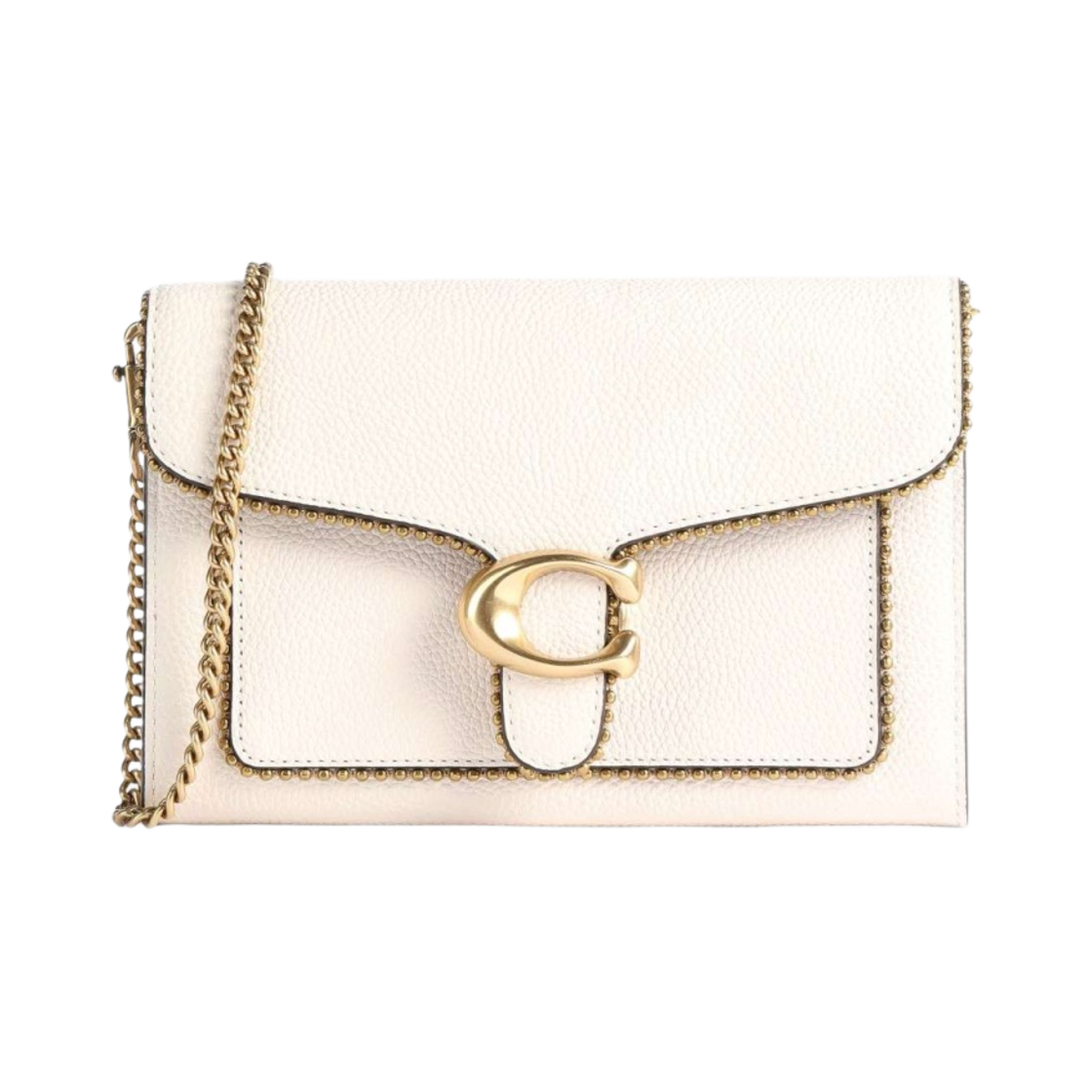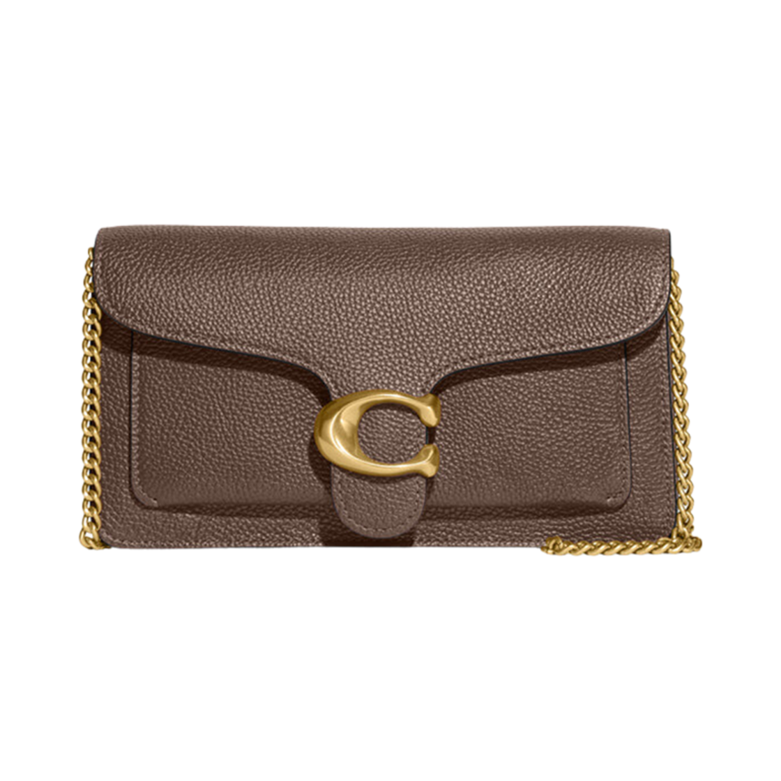 코치 시그니쳐 캔버스 태비 체인 클러치 탄 카라멜
