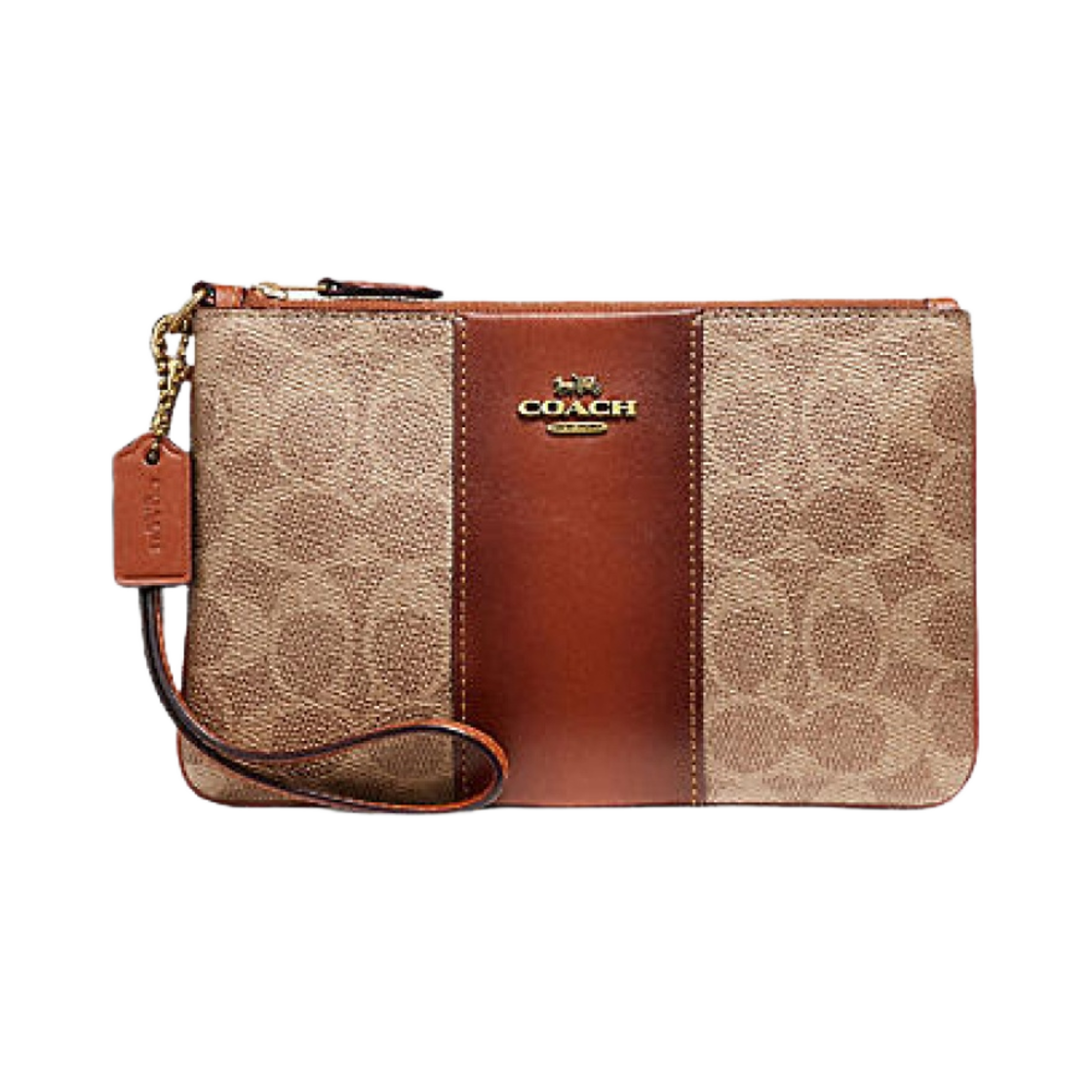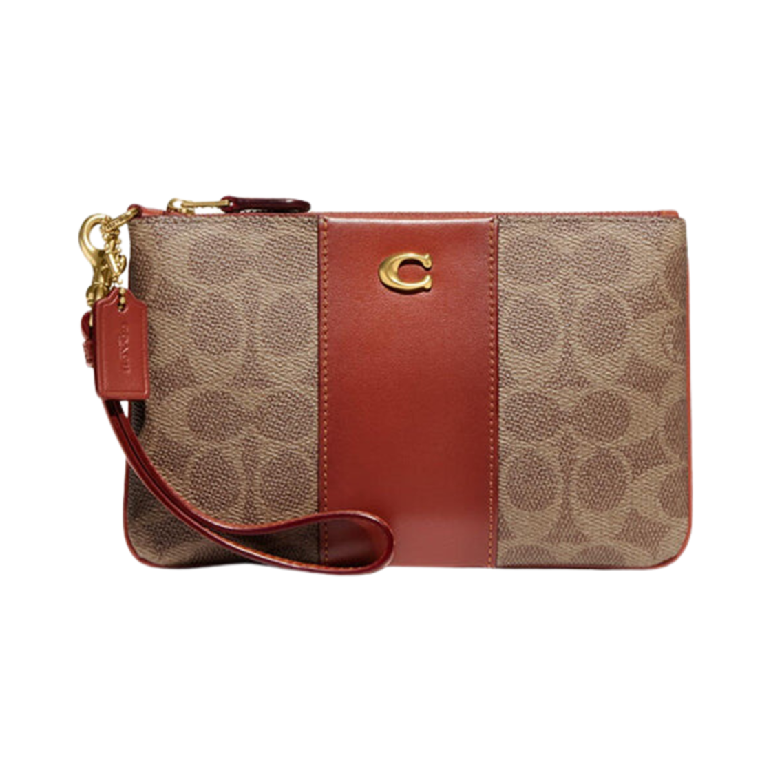 코치 스몰 리스틀릿 컬러블록 시그니쳐 캔버스 탄 러스트