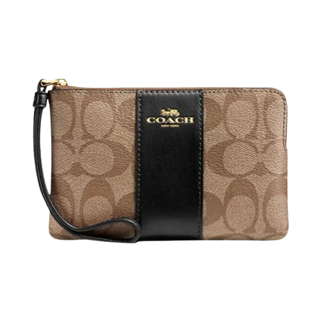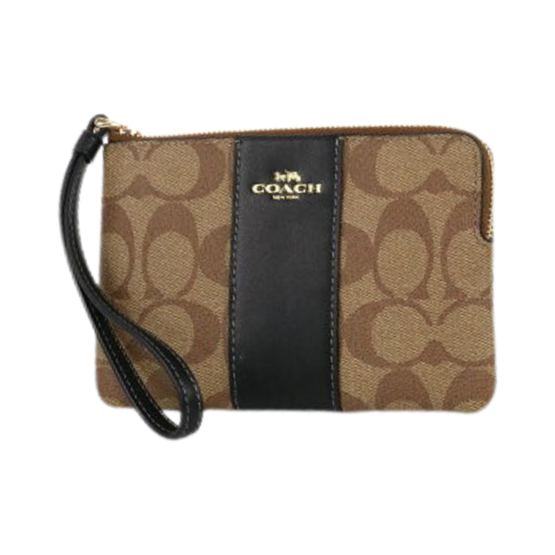 코치 시그니처 캔버스 코너 집 리스틀릿 브라운 블랙 멀티