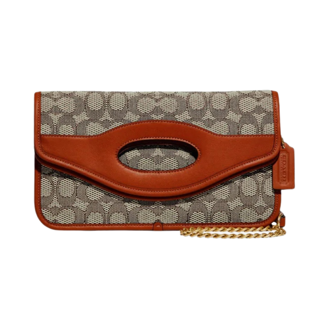 코치 폴드오버 컷 아웃 클러치 크로스바디 시그니쳐 자카드 코코아 버니쉬드 엠버