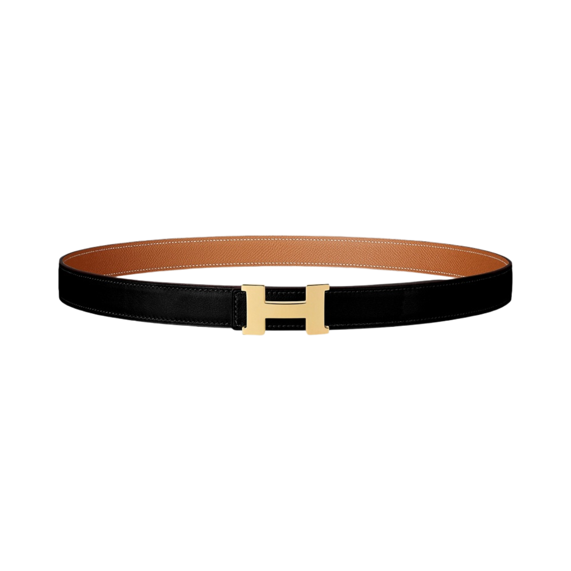 (W) 에르메스 미니 콘스탄스 벨트 버클 리버시블 레더 스트랩 스위프트 앱송 24mm & 골드 하드웨어 누아 골드
