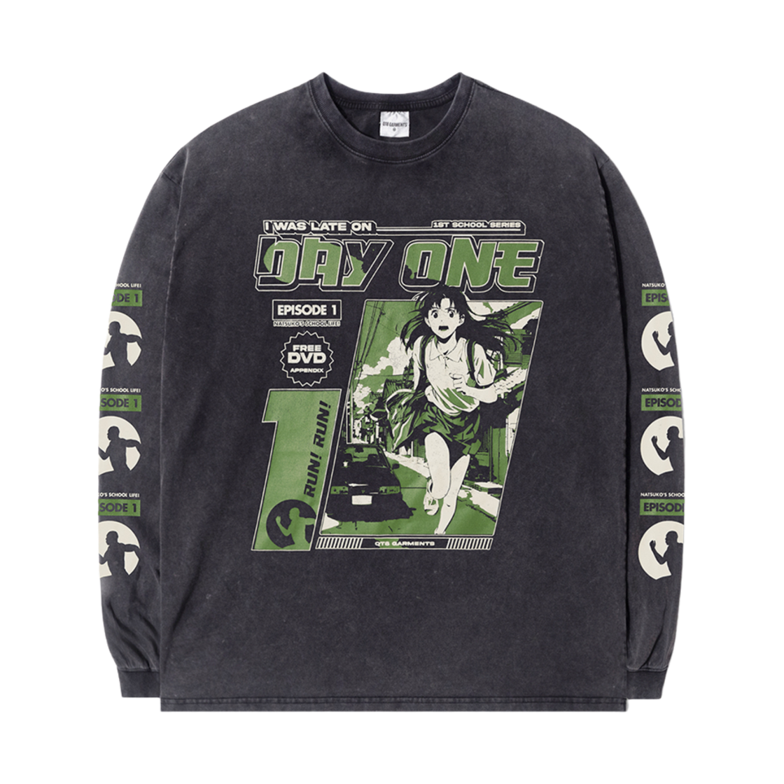 큐티에잇 가먼츠 기어 메이든 워시드 롱 슬리브 차콜