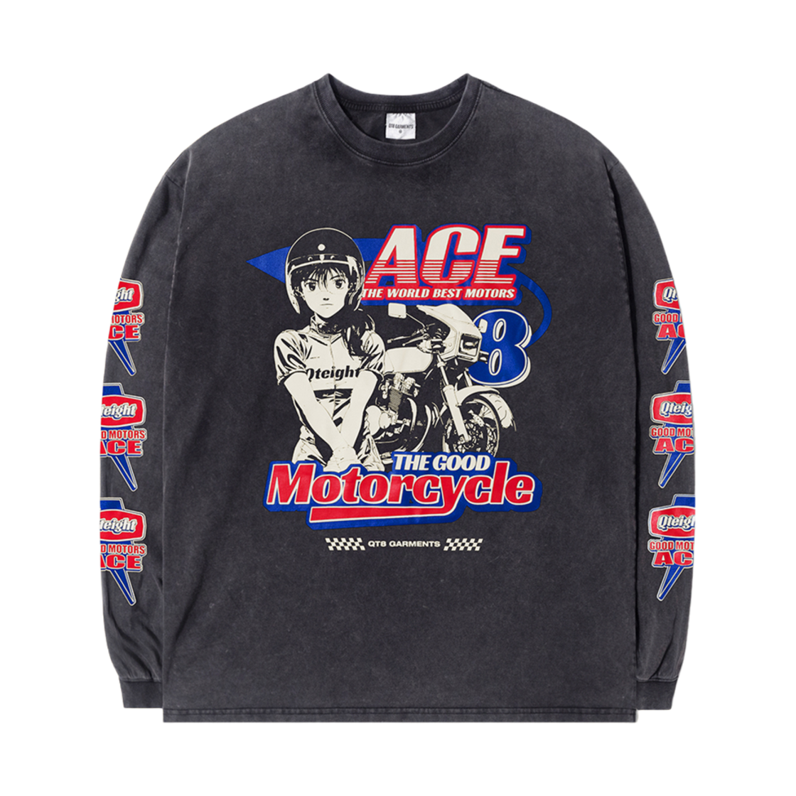 큐티에잇 가먼츠 에이스 모터스 셀파 워시드 롱 슬리브 블랙