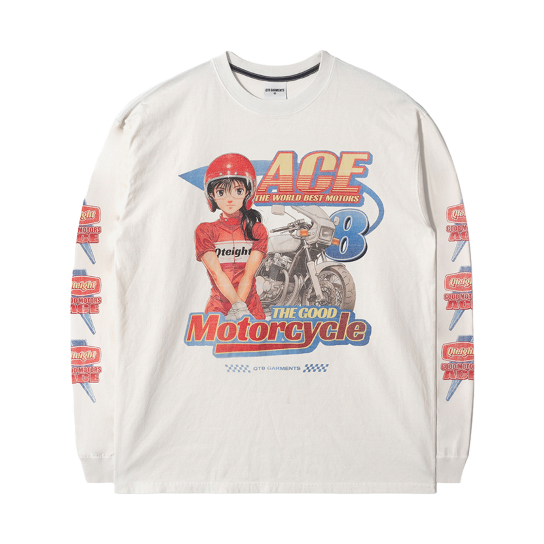 큐티에잇 가먼츠 에이스모터스 빈티지 워시드 롱슬리브 에크루