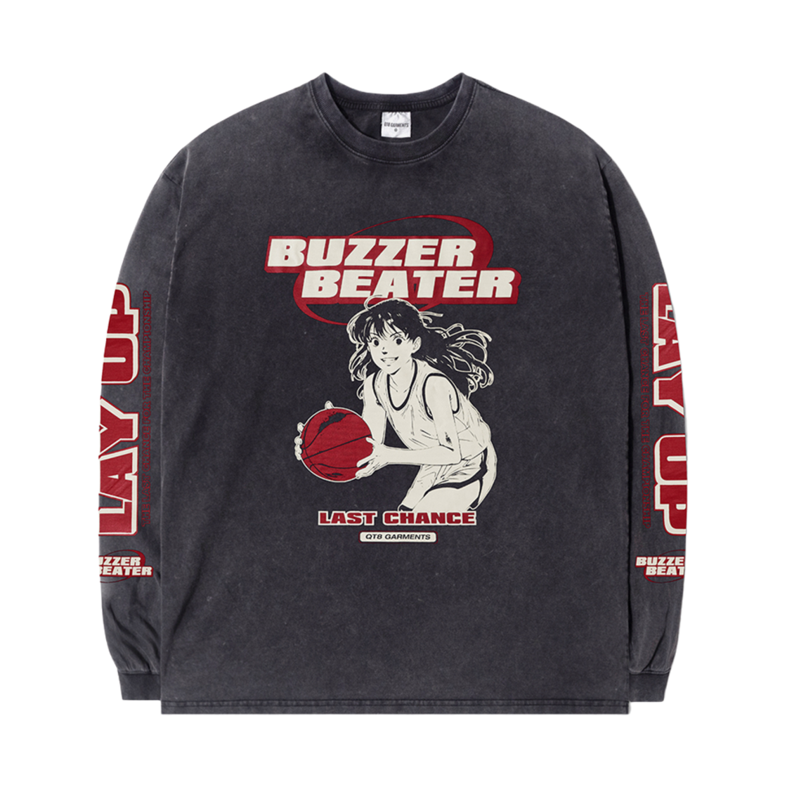 큐티에잇 가먼츠 버저비터 셀파 워시드 롱 슬리브 블랙