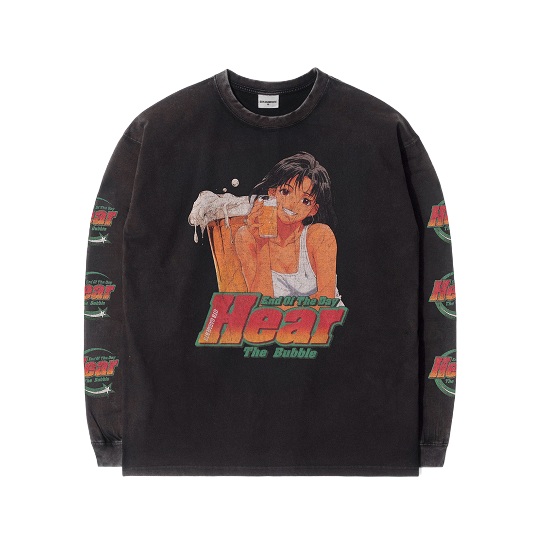 큐티에잇 가먼츠 히어더버블 워시드 롱 슬리브 블랙