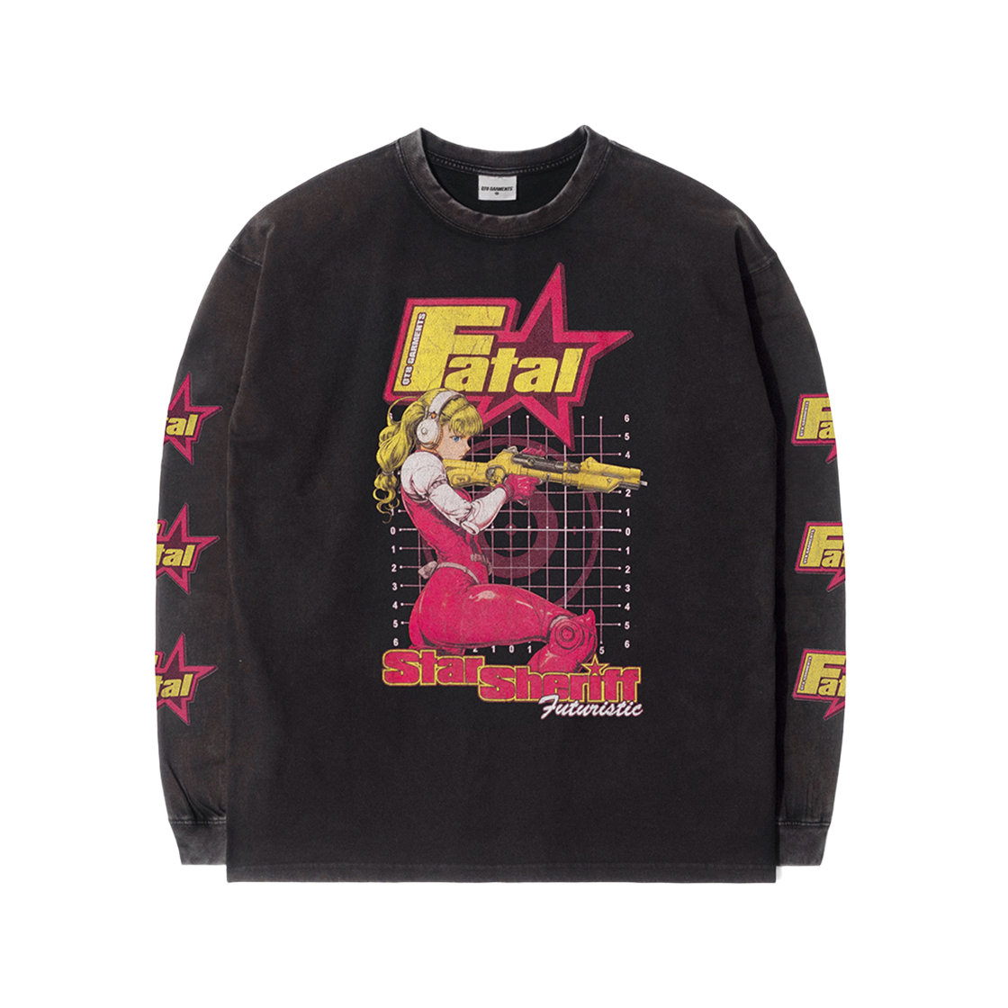 큐티에잇 가먼츠 스타 쉬리프 워시드 롱 슬리브 블랙