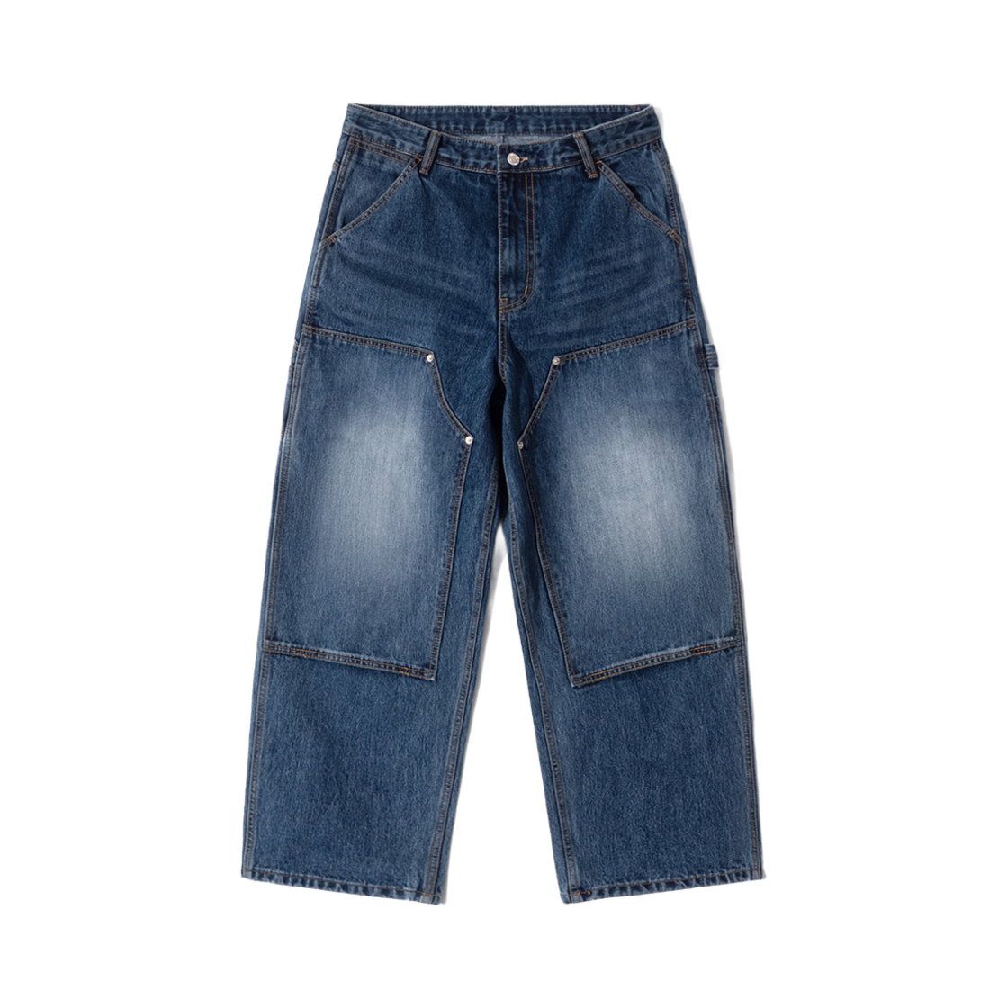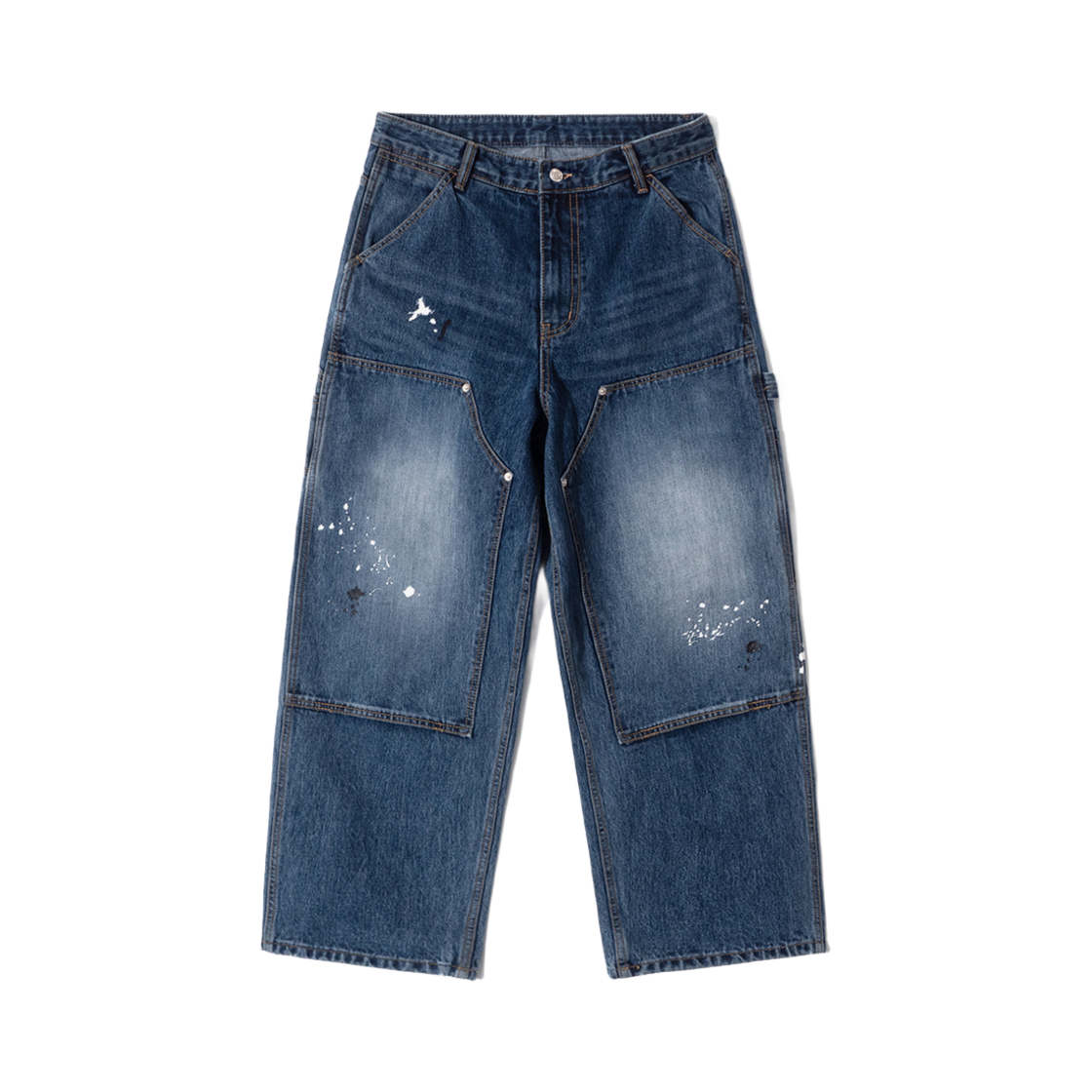 큐티에잇 가먼츠 페인티드 더블니 워시드 팬츠 블루