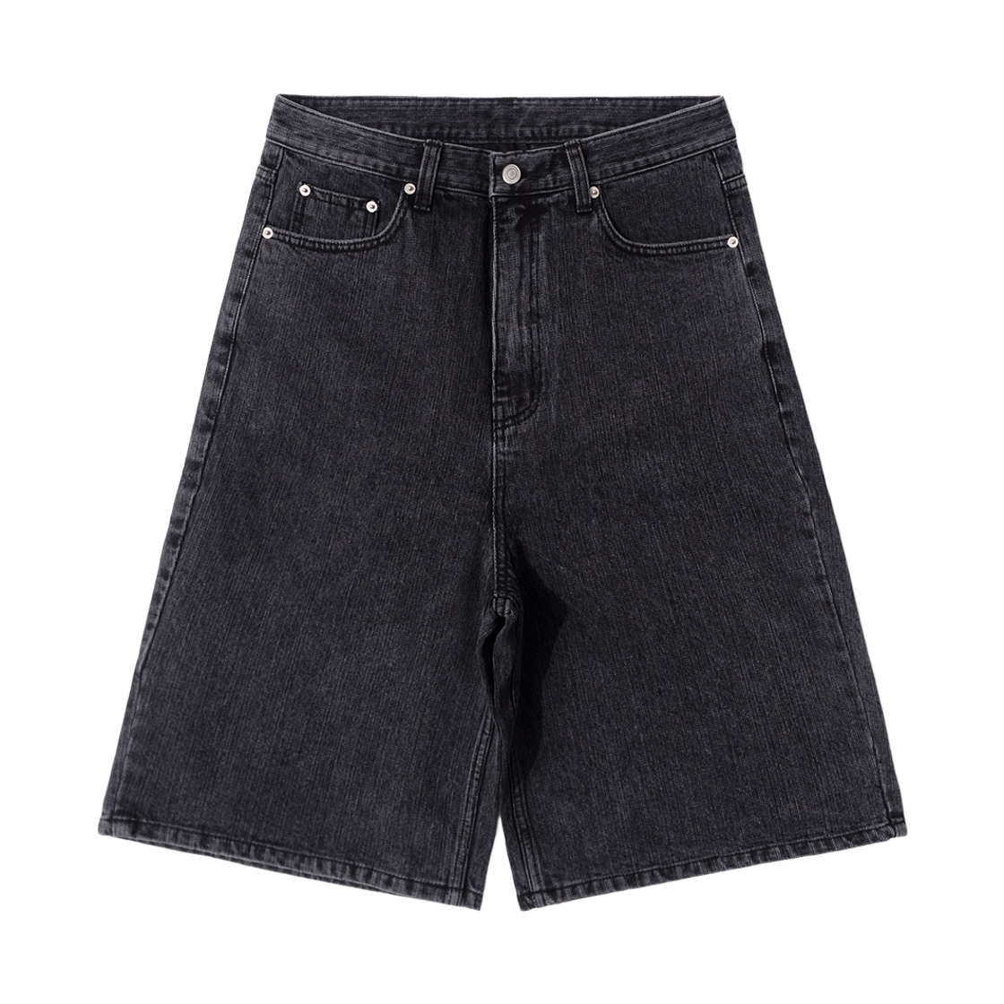 큐티에잇 가먼츠 체인 데님 와이드 버뮤다 쇼츠 블랙