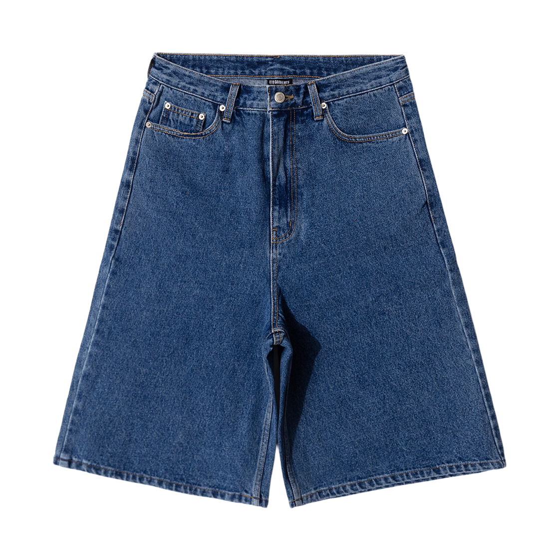 큐티에잇 가먼츠 데님 와이드 버뮤다 쇼츠 딥 블루