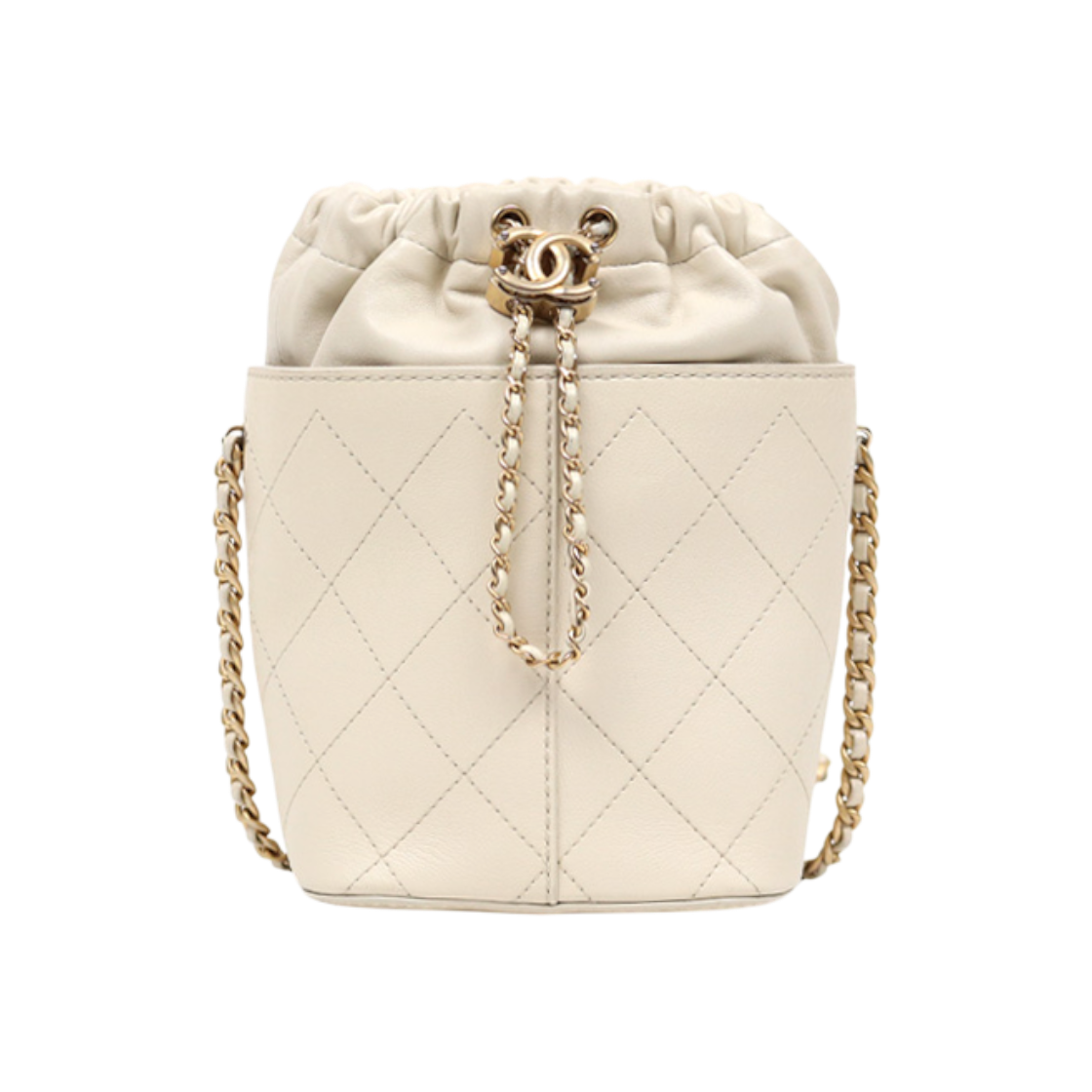 샤넬 베이지 퀼팅 드로스트링 버킷 크로스백 D-A43415