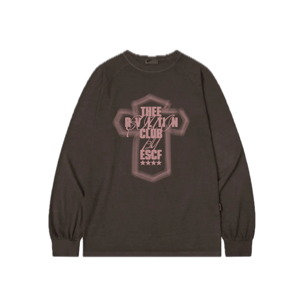 이스케이프프롬 라이트 크로스 프린트 오버핏 피그먼트 롱슬리브 브라운