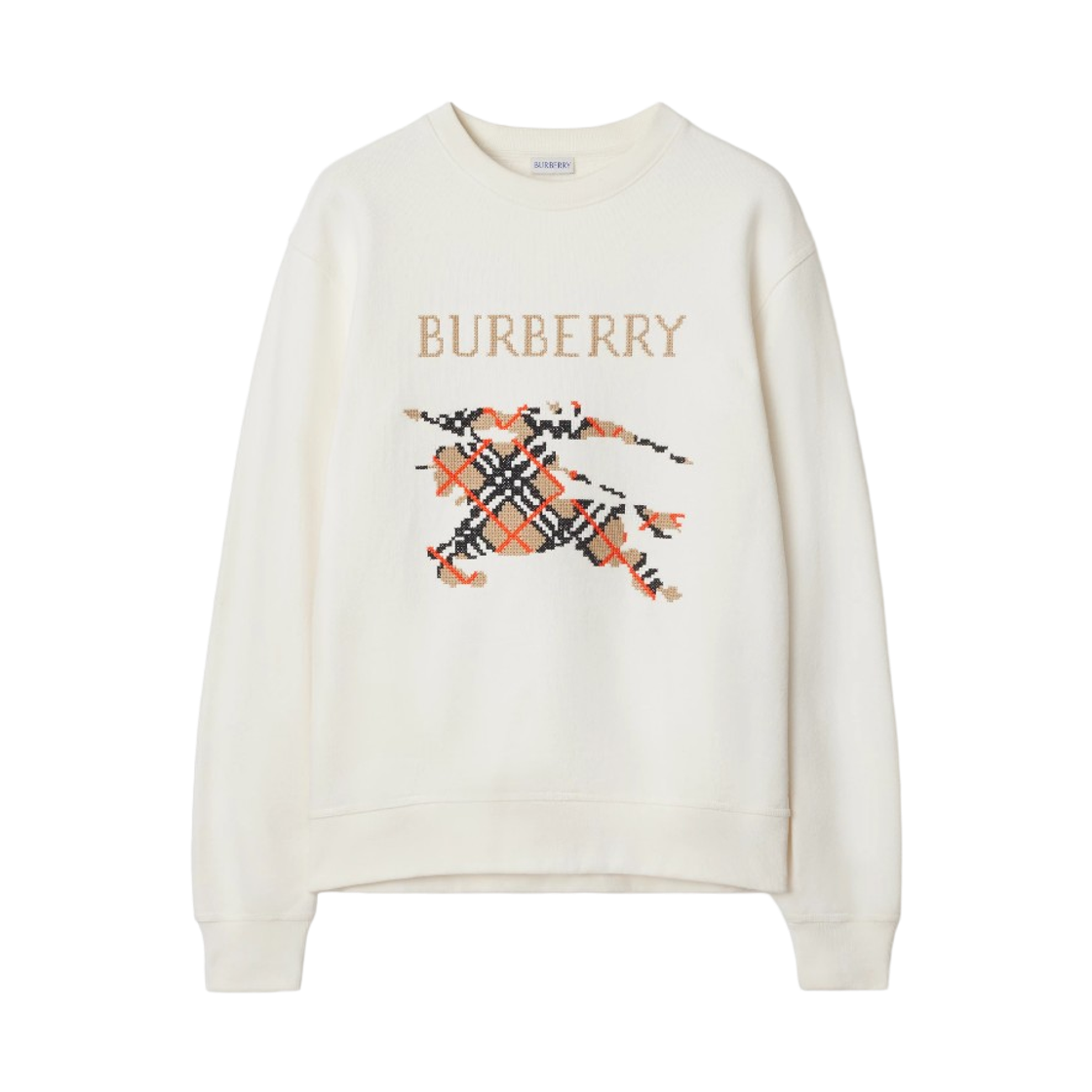 버버리 릴렉스드 핏 크로스 스티치 EKD 코튼 스웨트셔츠 초크 화이트