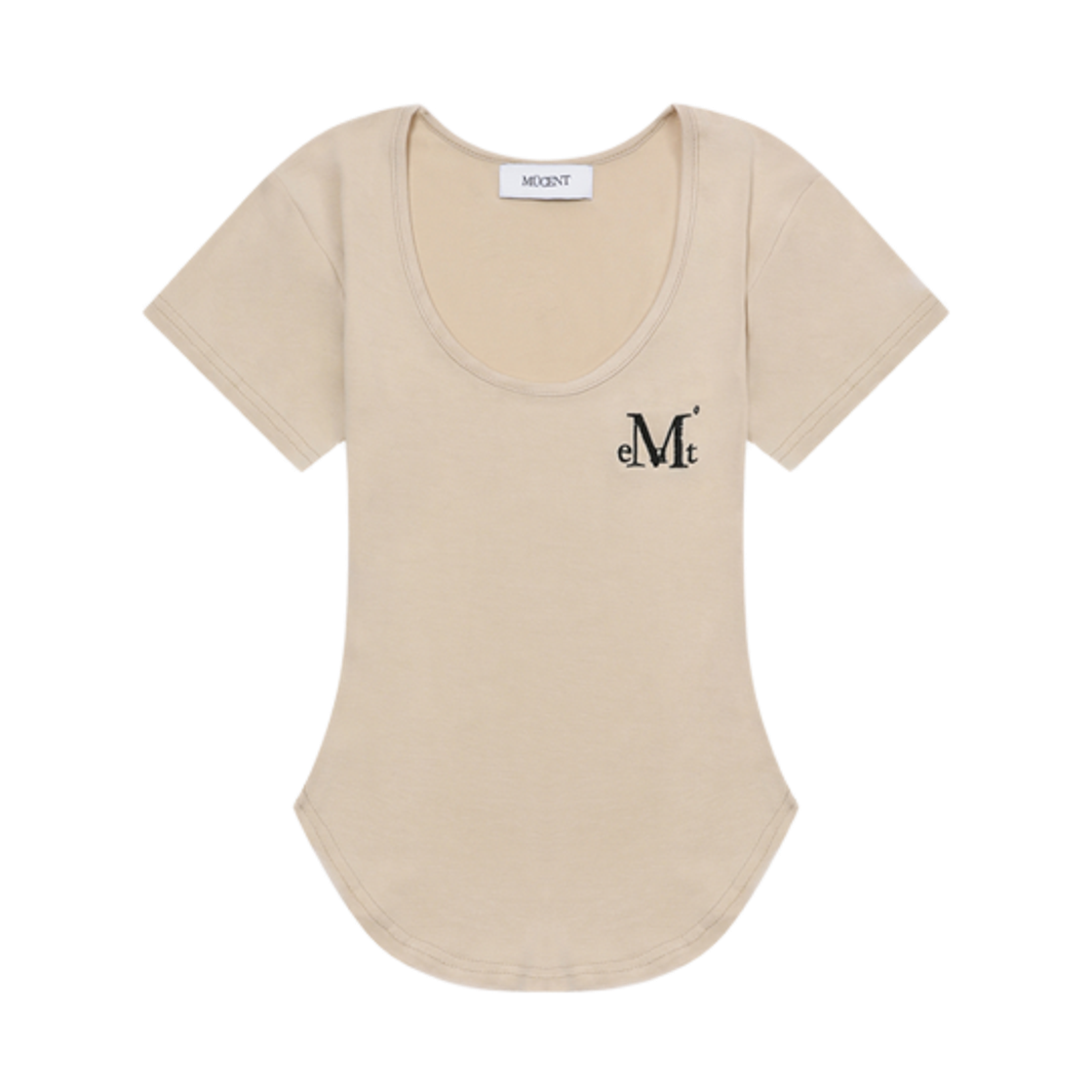 무센트 뮤즈컷 유넥 크롭 굴림 반팔 티 베이지