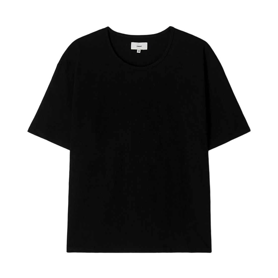 무센트 슬로프 후디 디테일 크롭 보트넥 반팔 티 블랙