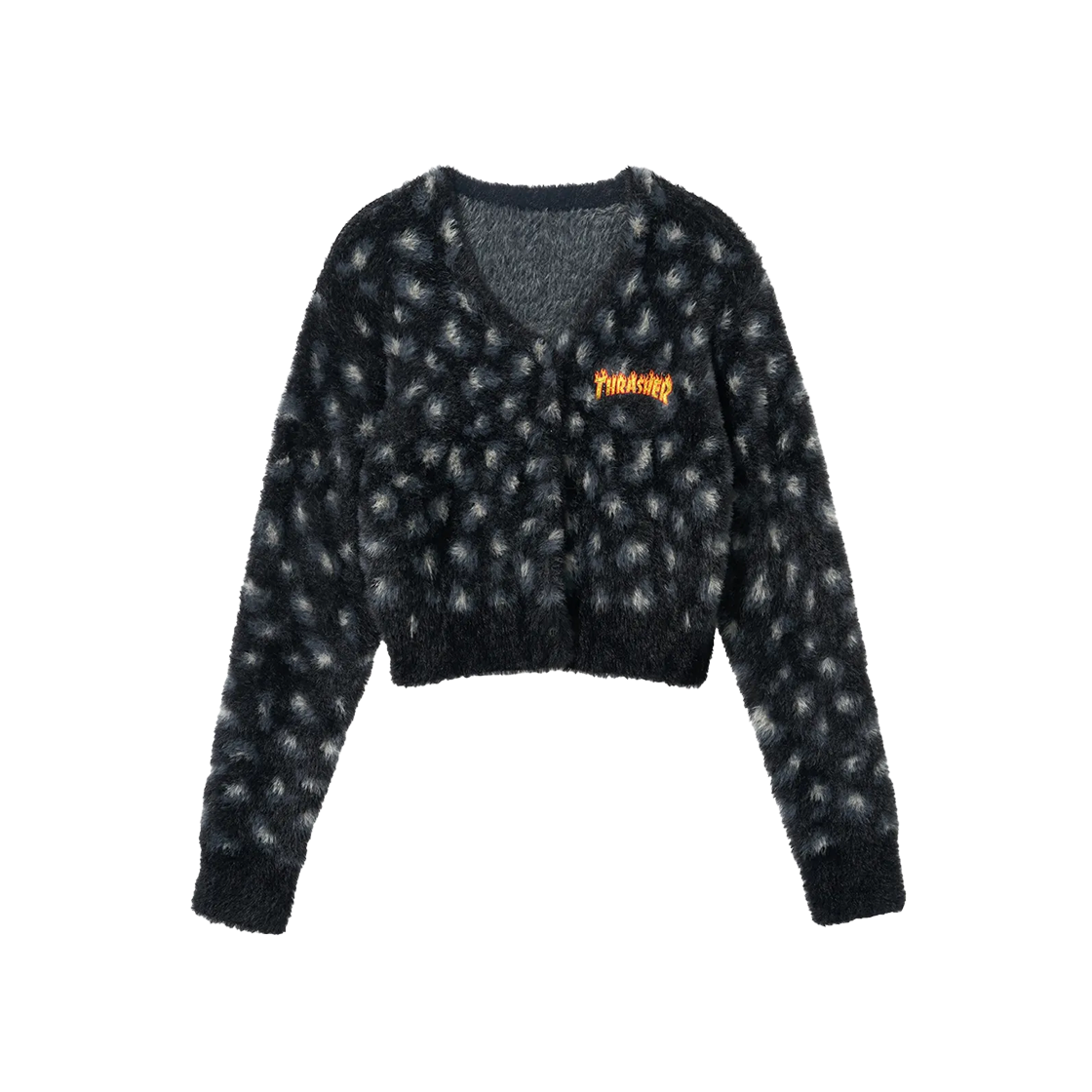 트레셔 우먼 레오파드 크롭 가디건 차콜