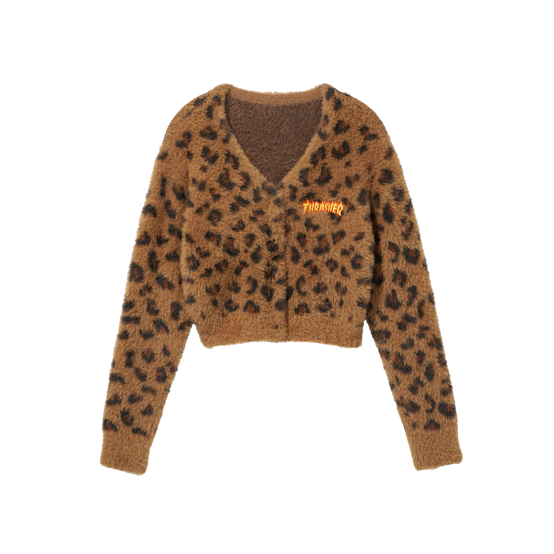 트레셔 우먼 레오파드 크롭 가디건 브라운