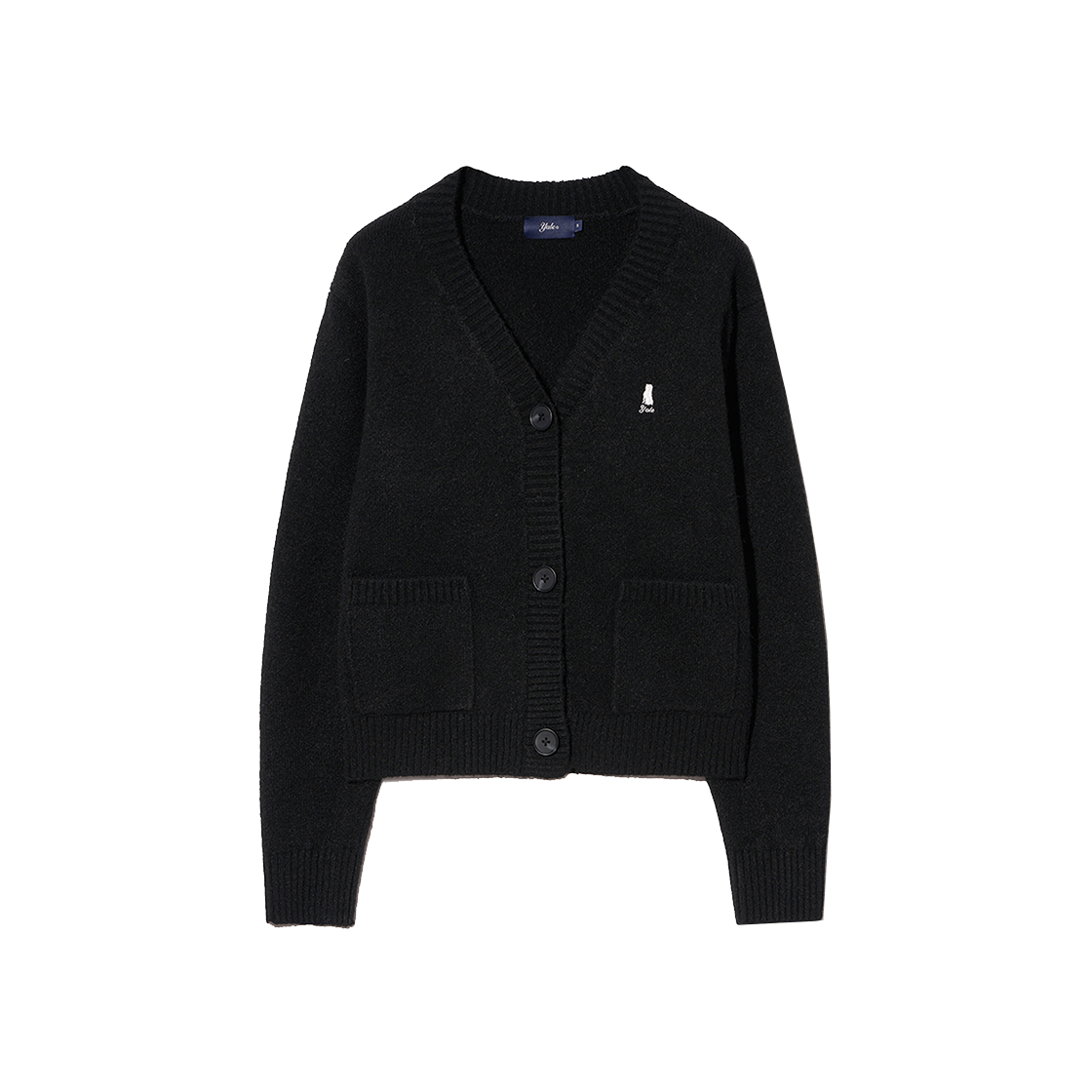 예일 우먼즈 부클레 브이넥 크롭 가디건_블랙
