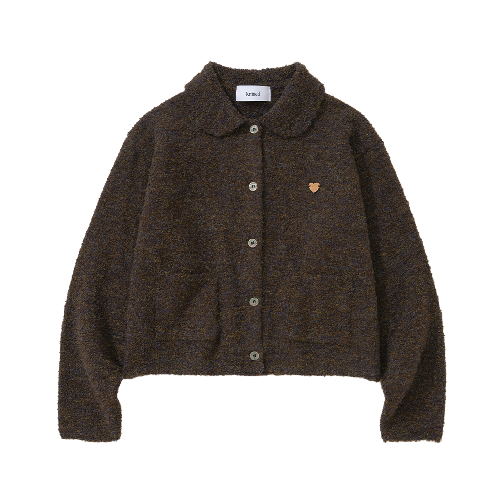 니티드 니티드 여성 부클 카라 크롭 가디건 브라운