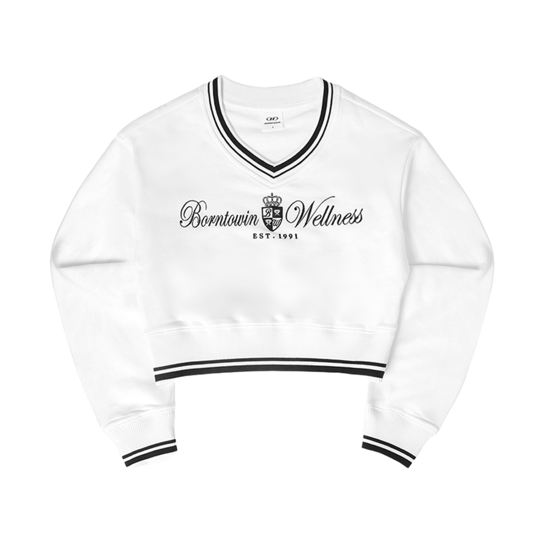 본투윈 우먼스 웰니스 브이넥 크롭 스웻셔츠 아이보리