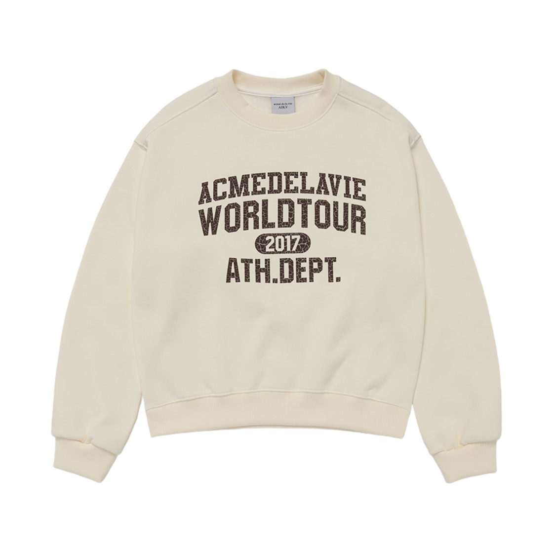 아크메드라비 올드스쿨 크랙 프린팅 크롭 내핑 쭈리 맨투맨 아이보리