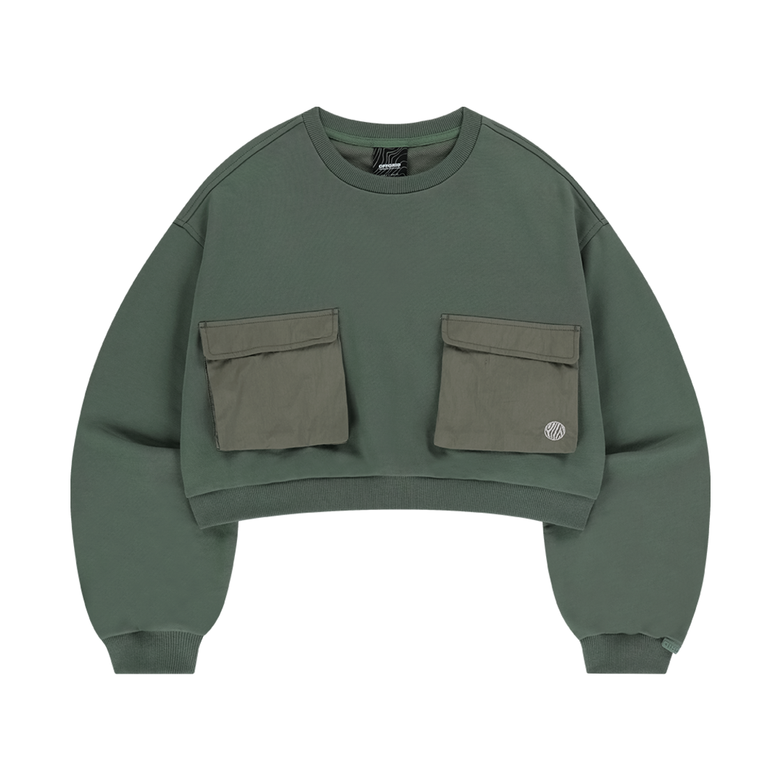 오프그리드 더블 포켓 크롭 맨투맨 카키
