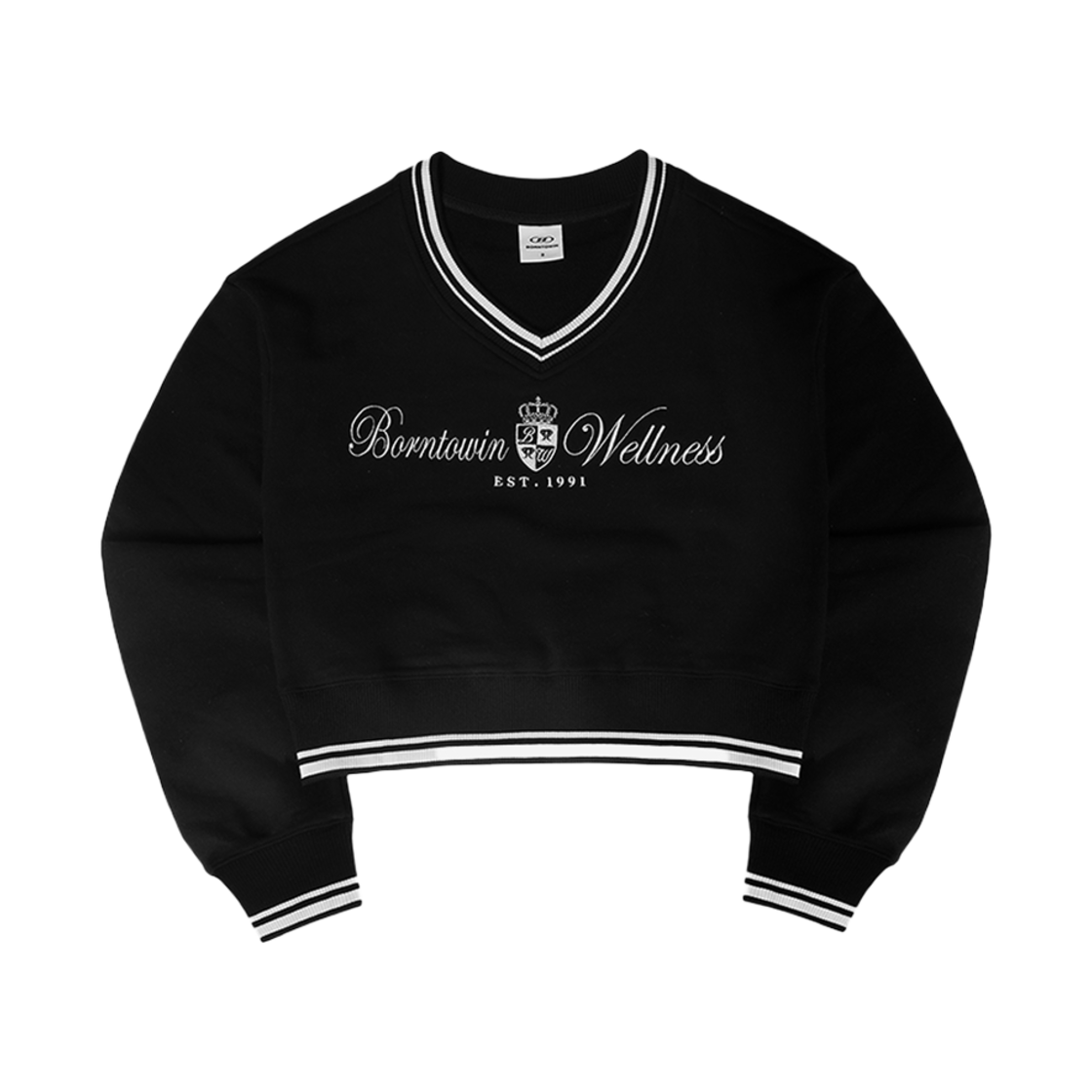 본투윈 우먼스 웰니스 브이넥 크롭 스웻셔츠 블랙