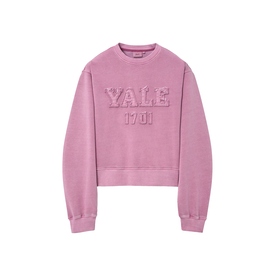 예일 우먼즈 피그먼트 아플리케 크롭 스웨트셔츠_핑크